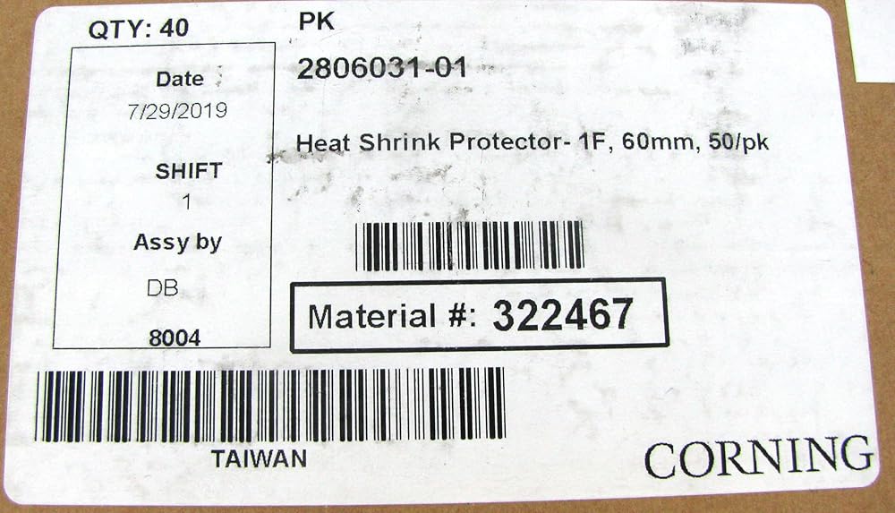 عام Corning 2806031-01 أكمام حامي لصق الحارقة الحرارية ، الألياف المفردة ، 60 مم ، 50pk ، 322467