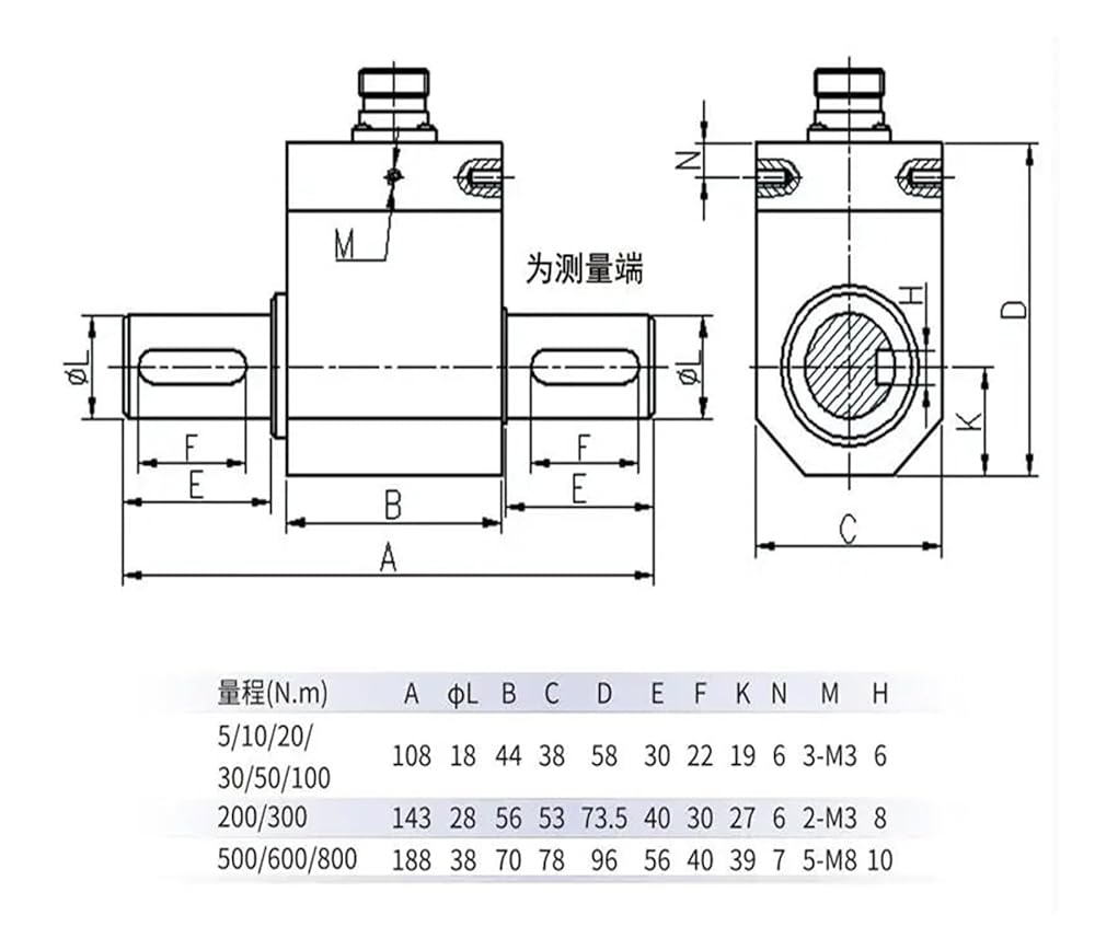 DYN-206 Dynamic Torque Sensor 500N.m 600N.m 800N.m Rotating Torque Measuring Instrument