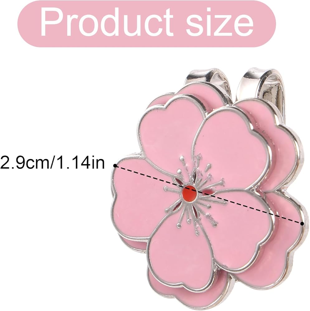 • Package Content: There are 2 pieces of pink flower shape golf ball marker hat clips in the package, which will meet your everyday decoration needs.