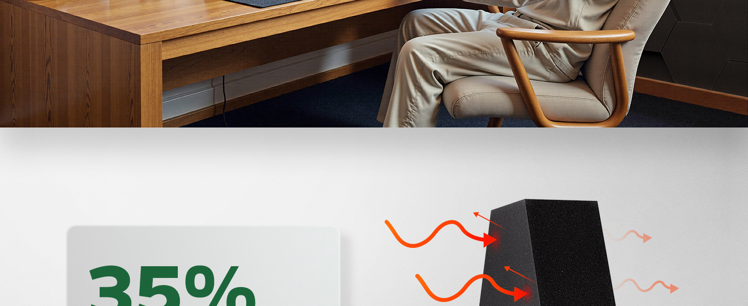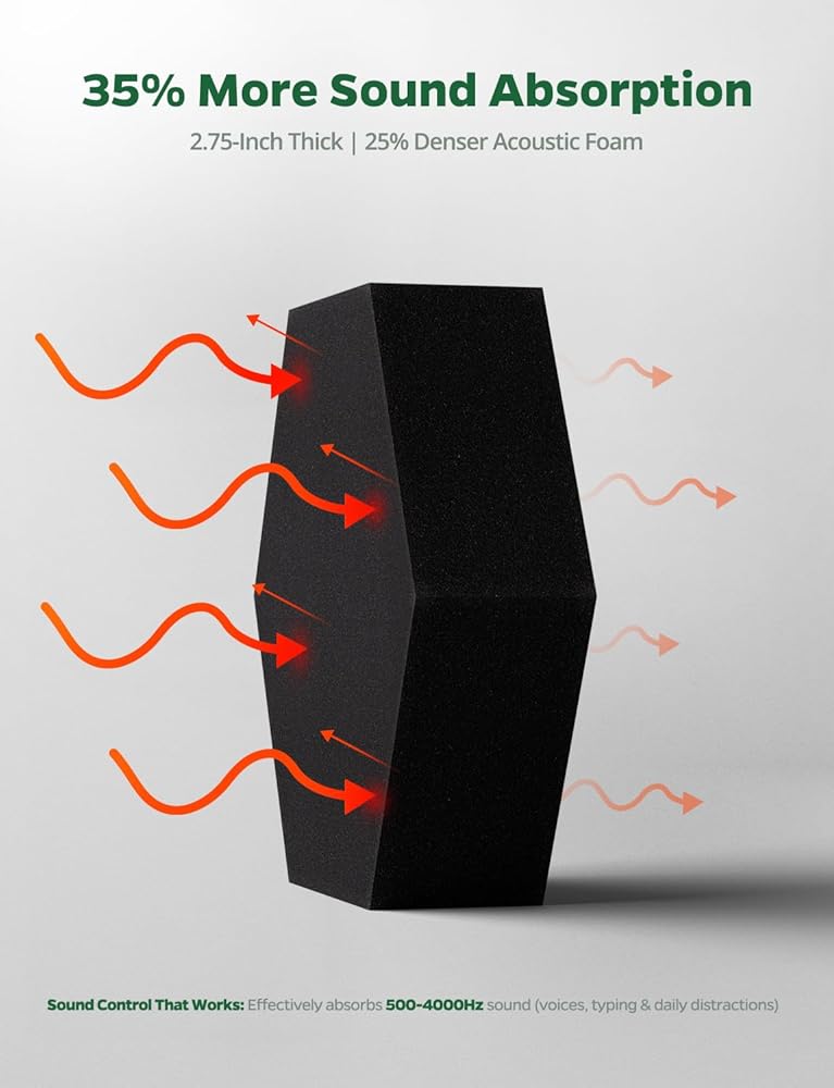 امتصاص الصوت بنسبة 35 ٪: تتميز ألواح الرغوة الصوتية الخاصة بنا بتصميم كثيف لامتصاص أفضل بنسبة 35 ٪ ، مما يقلل بشكل فعال من أصداء وانعكاسات. يوفر مساحات صوتية أكثر وضوحًا وغامرة وأكثر هدوءًا مع دليل على الصوت المعتدل.