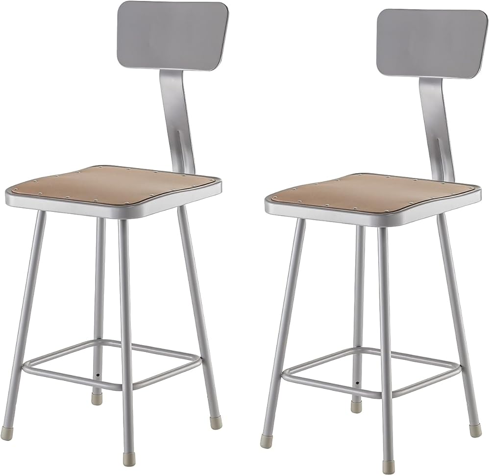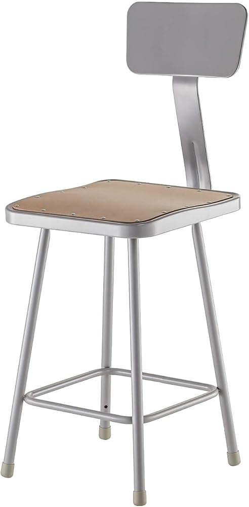 National Public Seating #6324B Features: -Footrings are welded to each leg.-Stools packaged two per carton.-With 4 contact points at each leg for added rigidity.-Made of 7/8'' o.d., 18-gauge steel tubing.-Product Type: Lab stool.-Collection: 6300 series.-Base Finish: Grey.-Seat Finish: Brown.-Distressed: No.-Powder Coated Finish: Yes.-Gloss Finish: Yes.-Frame Material: Metal -Frame Material Details: 18-gauge steel..-Reclaimed Wood: No.-Water Resistant: No.-Weather Resistant: No.-Scratch Resistant: No.-Rust Resistant: No.-Stain Resistant: No.-Fire Resistant: No.-Outdoor Use: No.-Stackable: No.-Portable: No.-Swivel: No.-Base Type: Legs.-Gliders (Backrest: Included): Yes.-Gliders (Size: 24"): Yes.-Gliders (Backrest: Not Included): No.-Gliders (Size: 30"): No.-Felt Foot Pads (Size: 30"): Yes.-Ergonomic: No.-Contoured Seat: Yes.-Casters: No.-Footring: Yes.-Adjustable Height Stool: Yes.-Arms: No.-Upholstered: No.-Nailhead Trim: No.-Hand Painted: No.-Hand Carved: No.-Storage Space Included: No.-Weight Capacity: 300.-Commercial Use: Yes.-Recycled Content: Yes -Total Recycled Content (Percentage): 0.4..-Eco-Friendly: Yes.Specifications: -Square, contoured hardboard seat with 16 rivets to prevent warping.-GSA Approved: Yes.-ANSI BIFMA Compliant: Yes.Dimensions: -Overall Height - Top to Bottom (Backrest: Included): 39.-Overall Height - Top to Bottom (Size: 24"): 45.-Overall Height - Top to Bottom (Backrest: Not Included): 47.5.-Overall Height - Top to Bottom (Size: 30"): 53.5.-Overall Width - Side to Side (Backrest: Included): 16.-Overall Width - Side to Side (Size: 24"): 16.-Overall Width - Side to Side (Backrest: Not Included): 20.-Overall Width - Side to Side (Size: 30"): 20.-Overall Depth - Front to Back (Backrest: Included): 16.-Overall Depth - Front to Back (Size: 24"): 16.-Overall Depth - Front to Back (Backrest: Not Included): 20.-Overall Depth - Front to Back (Size: 30"): 20.-Seat Height (Backrest: Included): 24.-Seat Height (Size: 24"): 30.-Seat Height (...