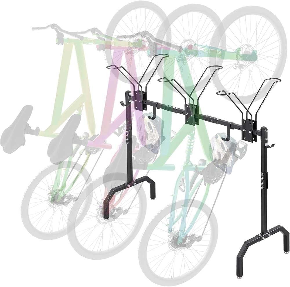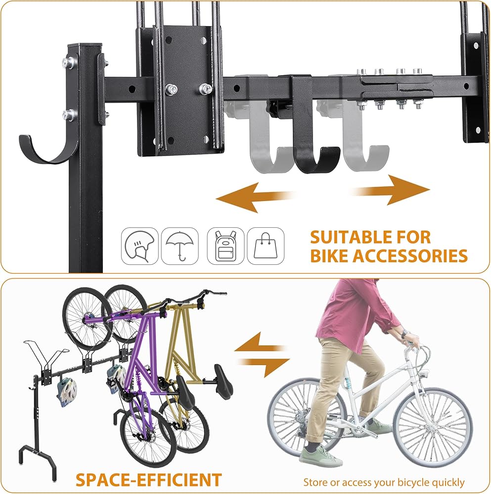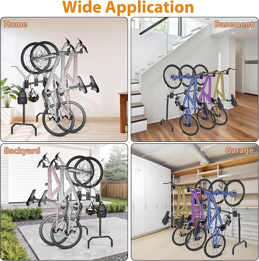 تصميم قابل للتعديل: سيسمح إعداد الارتفاع القابل للتعديل للحارس من 38.6 "- 42.5" بتعديل رف الدراجات القائم بذاته لتناسب تصميم 3-Levle ، واستيعاب حجم مختلف الدراجات وتركيب متطلباتك المختلفة