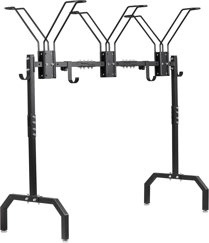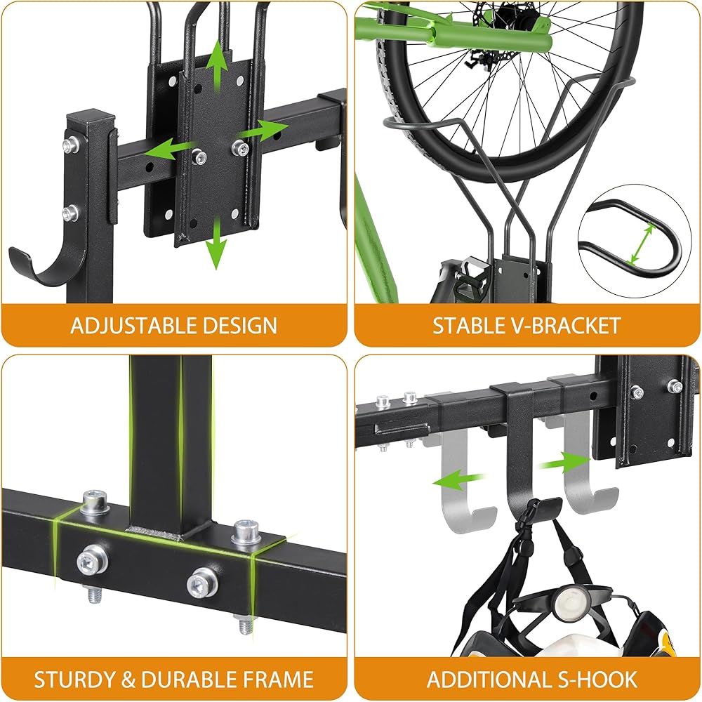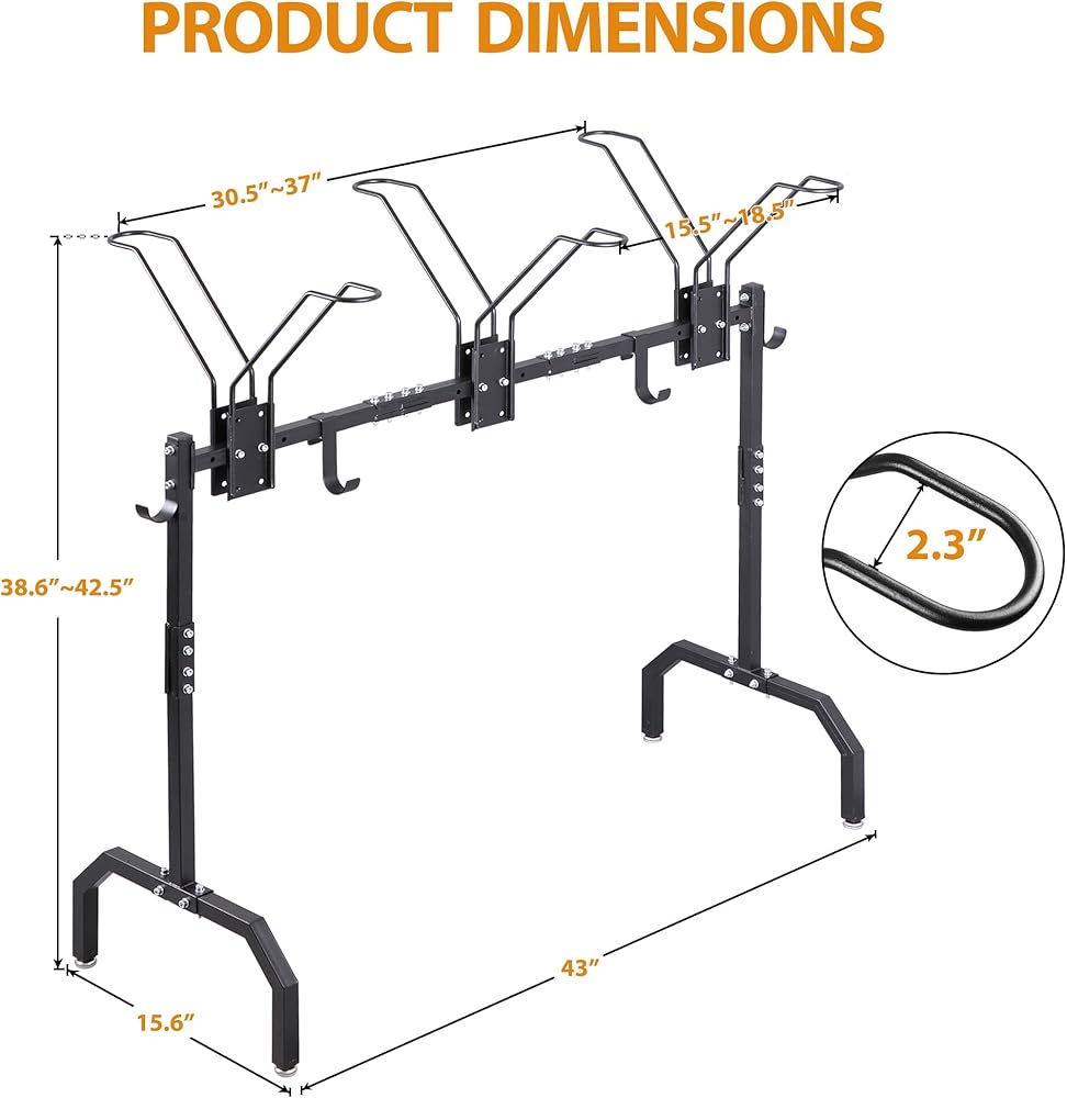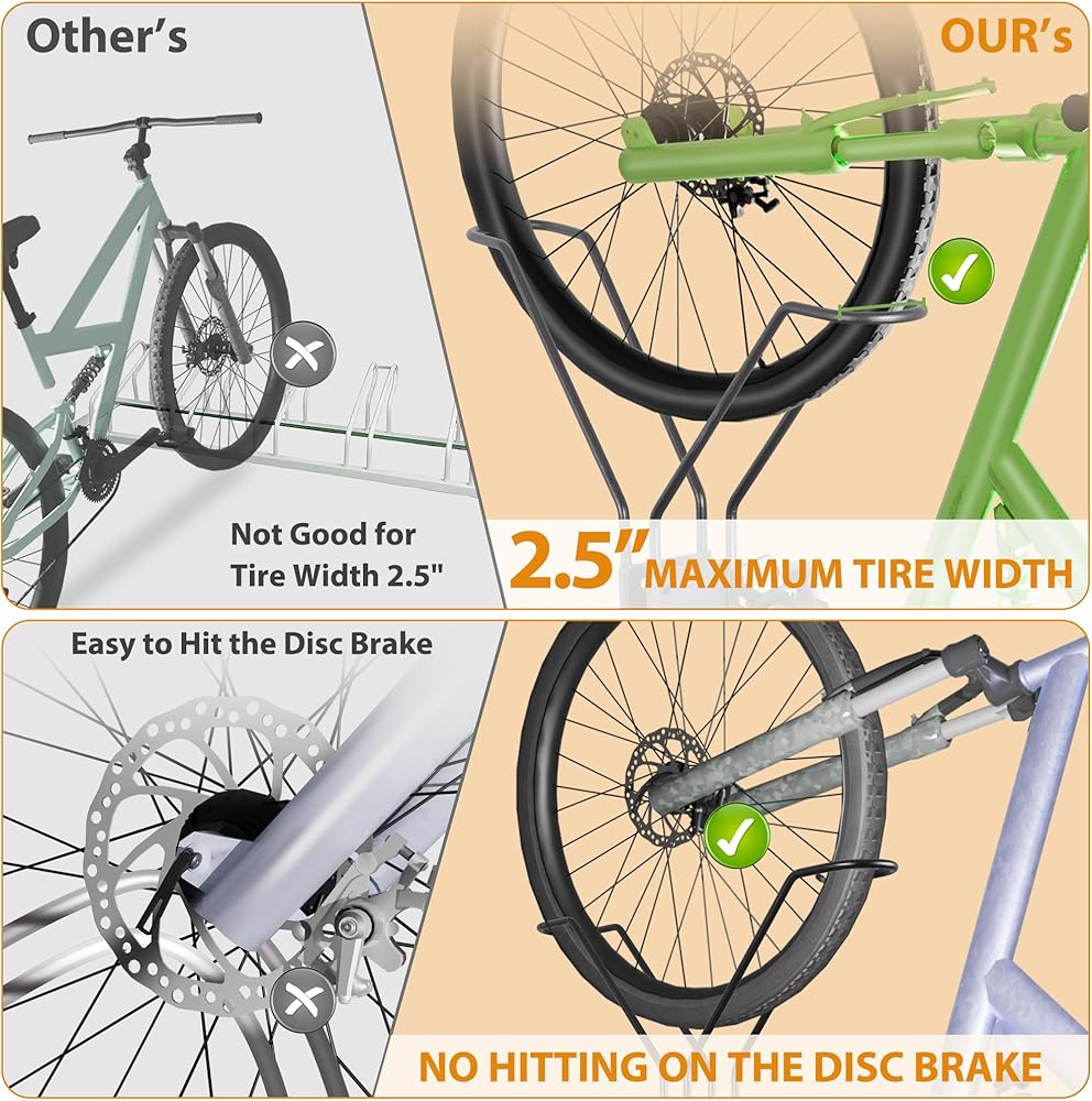تصميم قابل للتعديل: سيسمح إعداد الارتفاع القابل للتعديل للحارس من 38.6 "- 42.5" بتعديل رف الدراجات القائم بذاته لتناسب تصميم 3-Levle ، واستيعاب حجم مختلف الدراجات وتركيب متطلباتك المختلفة