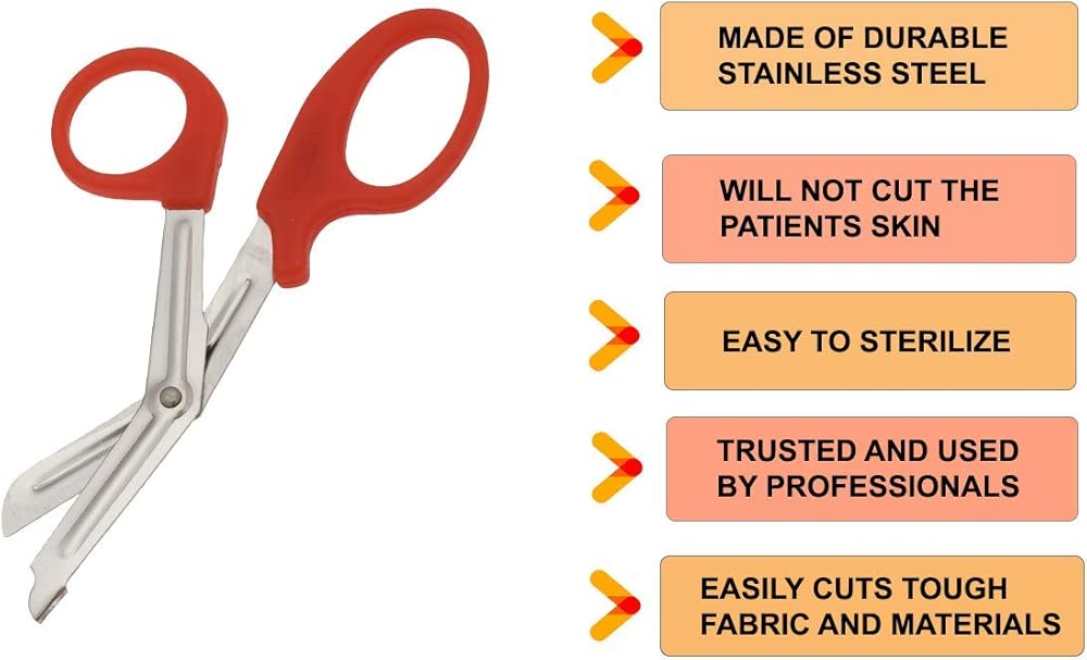 ➼ مقطع من خلال مواد صعبة: تتميز مقصات الصدمات الشديدة بالخدمة الحافة السفلية المسننة التي تسمح لهذه المقصات بالقطع بسهولة من خلال أصعب المواد. يقطع بشكل فعال النسيج ، القماش ، الجلود ، الفينيل وحتى طبقات متعددة من القماش السميك دون أي صراع على الإطلاق. تعتمد على هذه المجموعة من مقص التمريض لحياتك المهنية الطبية أو تعليمك أو استخدام الإسعافات الأولية المنزلية. احتفظ بواحد في سيارتك لحالات الطوارئ التلقائية ، أو لقطع حزام الأمان للإنقاذ أو قطع الملابس لأداء CPR.