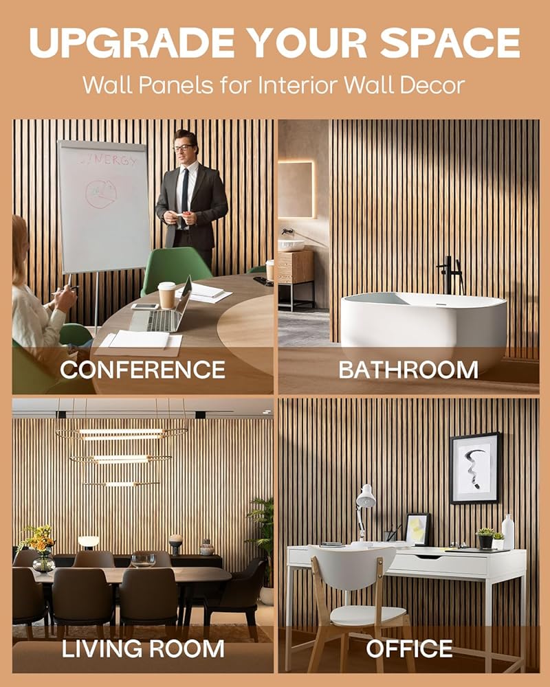 أجواء ريفية حديثة مع الانتهاء من البلوط الخفيف: أحضر إحساس مزرعة دافئ وحديث إلى مساحتك مع ألواح صوتية خشبية من خشب البلوط الطبيعية. تمتزج هذه الألواح الخشبية للجدار دون عناء مع الأثاث الخفيف والجدران البيضاء والإضاءة الناعمة. تجعل صفاتها المقاومة للصوت لوحات جدارية مثالية لديكور الجدران الداخلية في الأسر المزدحمة أو الشقق المشتركة.