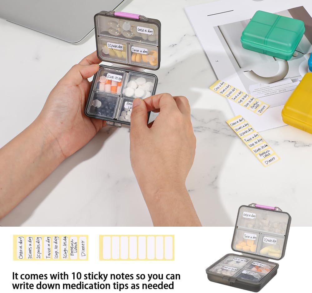 • 【 Product size 】 We can call it pocket pharmacy or mini pill container, the design size is 3.1in*2.5in*1.8in, small size, easy to carry, pockets, backpacks, handbags, can be easily stored, is one of the essential items for travel, field exploration, work, we deliver blank label paper, so that your drug planning and management is easy.
