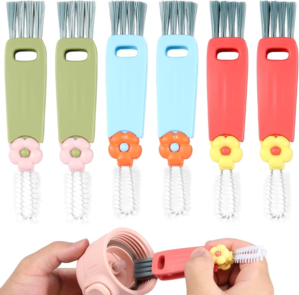 [Multifunctional Cup Lid Cleaning Brush] This cup lid cleaning brush comes with 6× Cup Lid Cleaning Brushes. The cup lid cleaning brush features multifunctional design, a cup lid brush for tough handling, a crevice brush for cleaning narrow spaces, and a corner brush with bristles is used to clean tight corners.