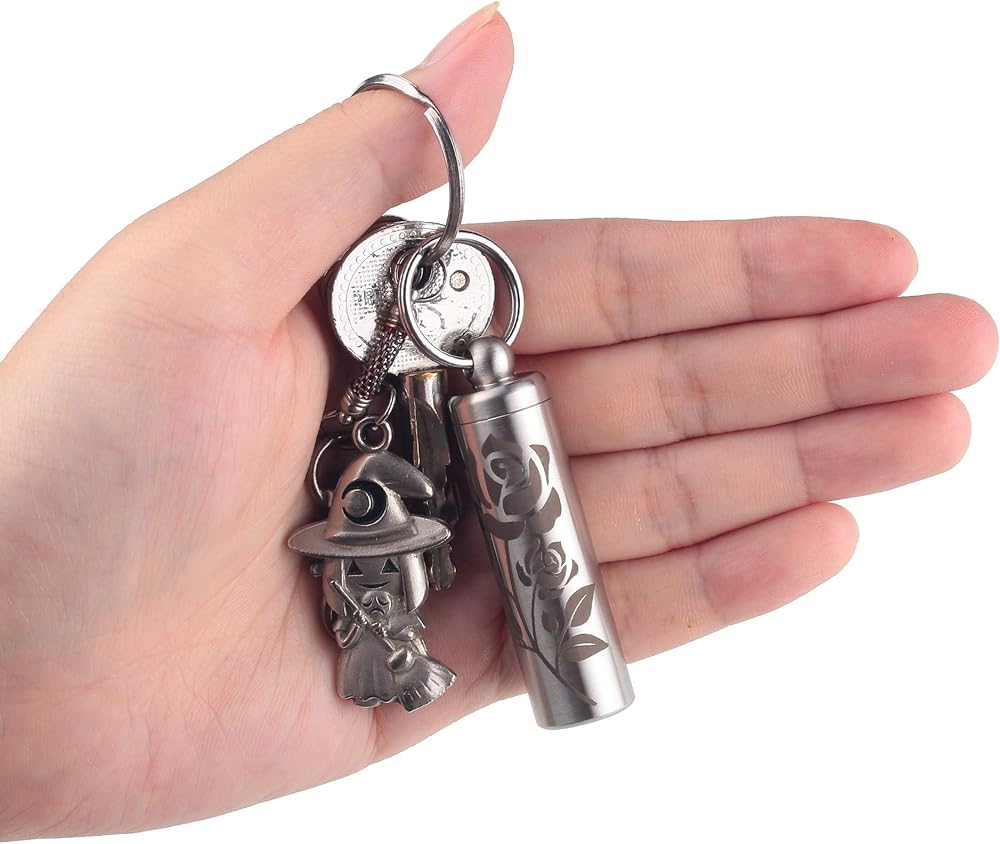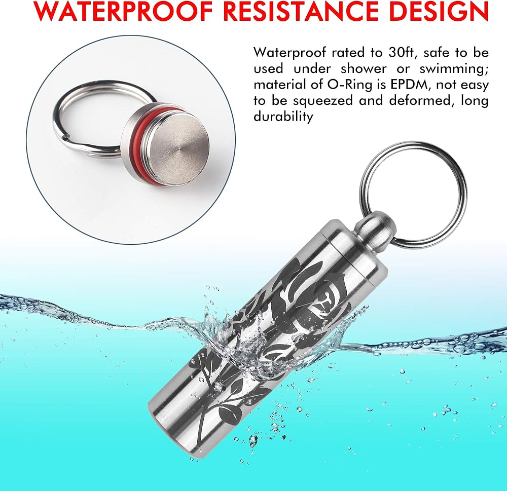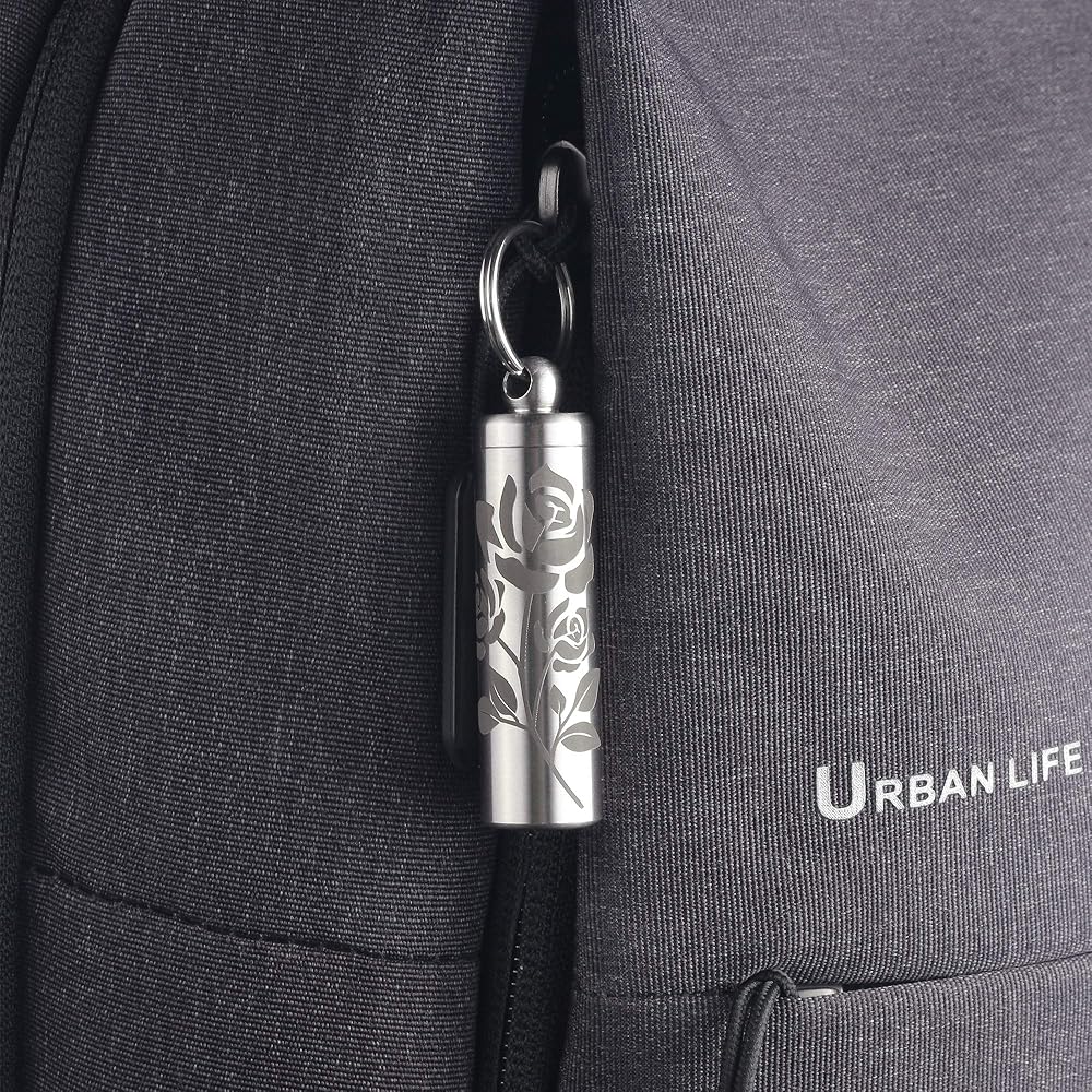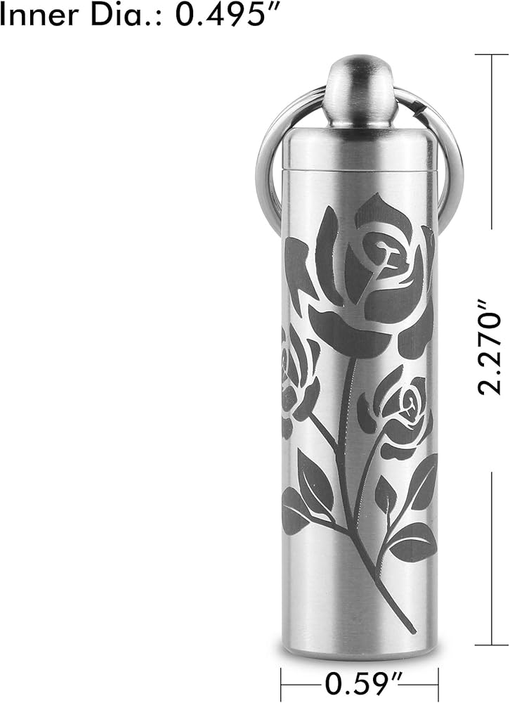 حامل حبوب بحجم مثالي لسلسلة المفاتيح - القطر الداخلي هو 0.5 بوصة، الطول الكلي 1.95 بوصة والوزن الإجمالي (بدون حلقة مفاتيح) هو 1.05 أوقية؛ تصميم EDC حقيقي مطور من ردود الآلاف المستخدمين.