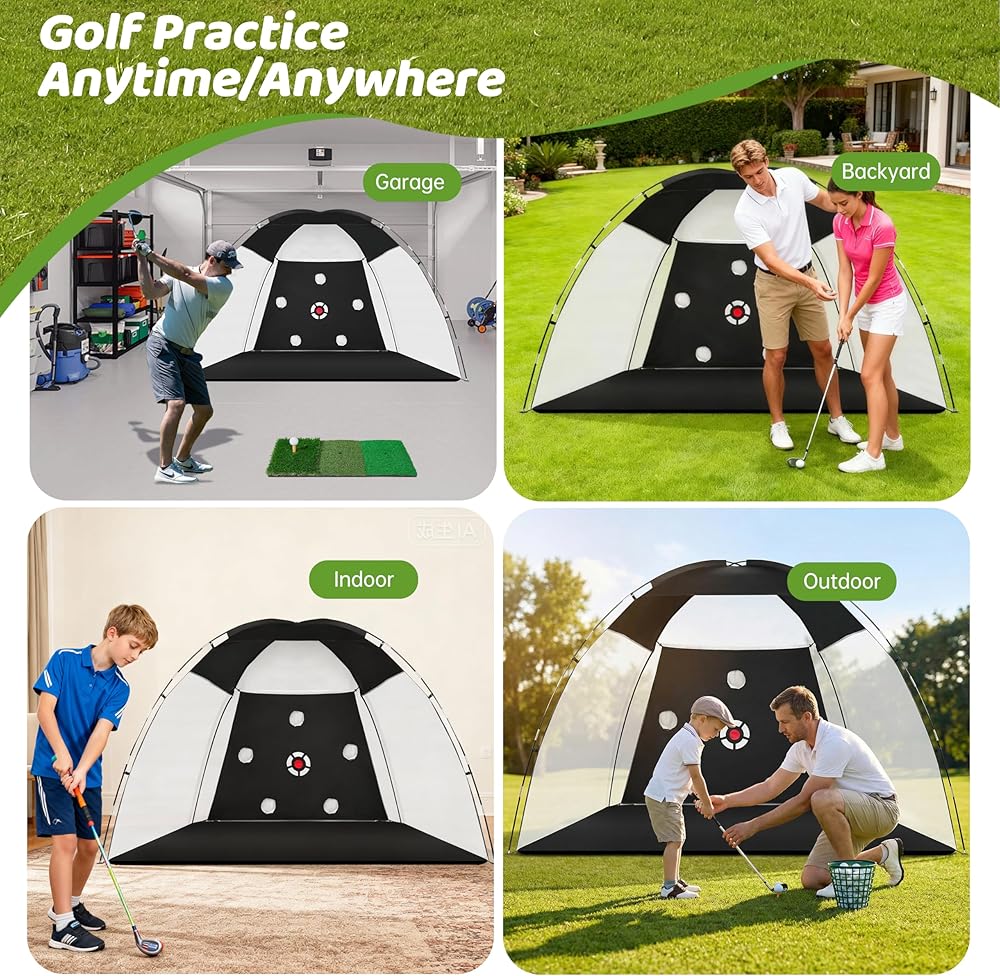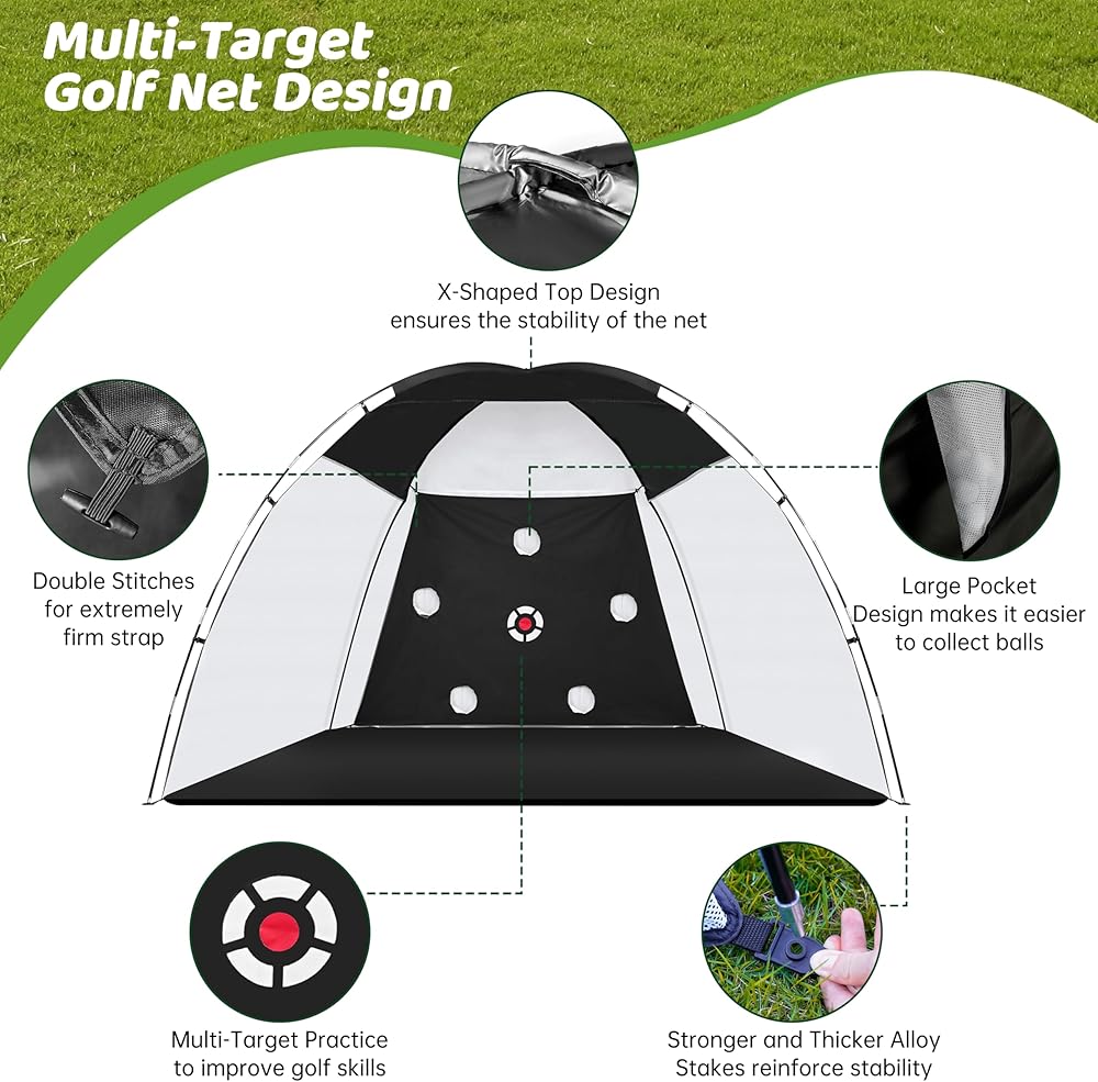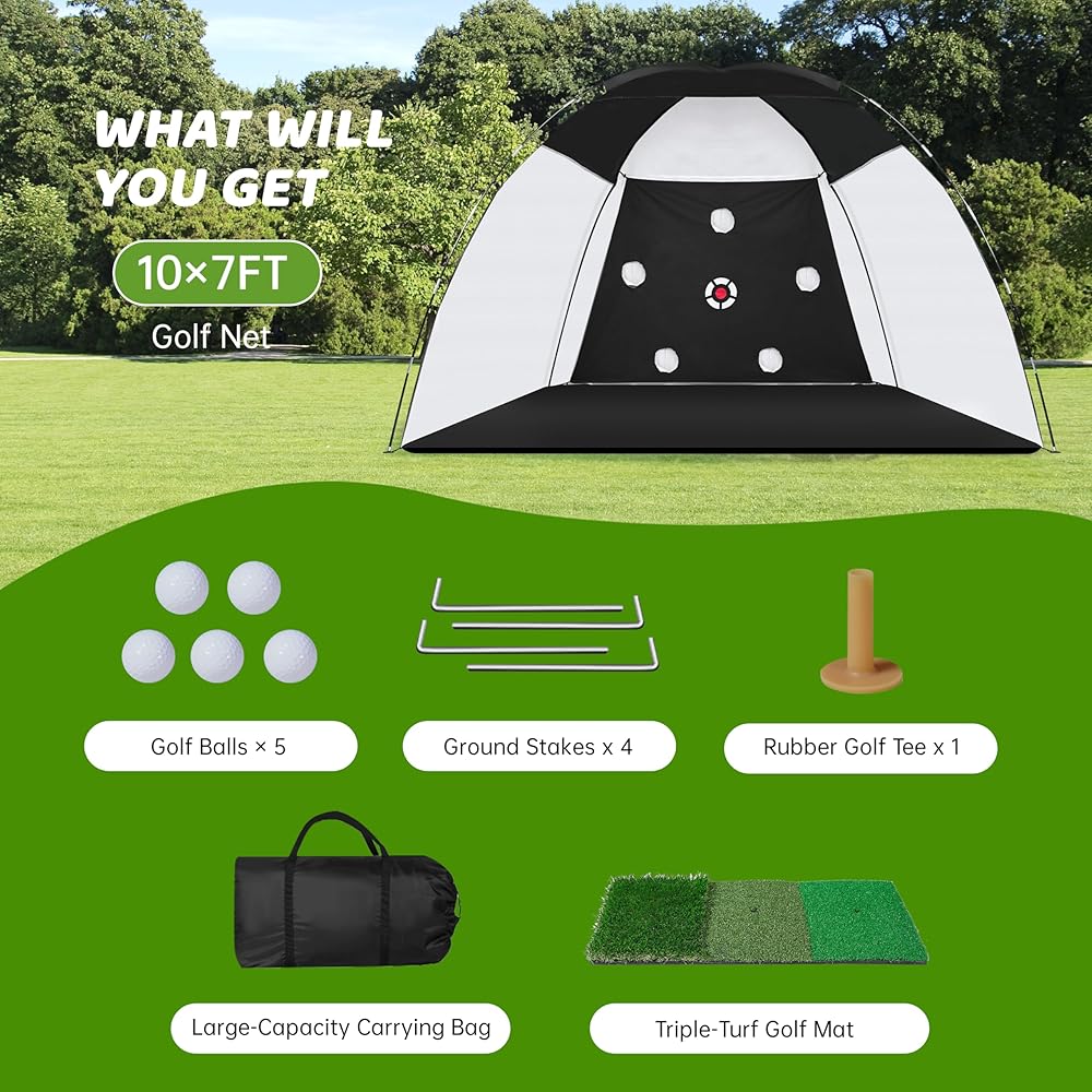 شبكة جولف، شبكة تدريب مقاس 10 × 7 أقدام مع حصيرة عشب ثلاثية ثقيلة، شبكة ضرب جولف متعددة الأهداف الكل في واحد، تدريب على القيادة في الأماكن المغلقة في الهواء الطلق مع هدف/حصيرة/كرات/تي شيرت/حقيبة، هدية للاعبي الجولف