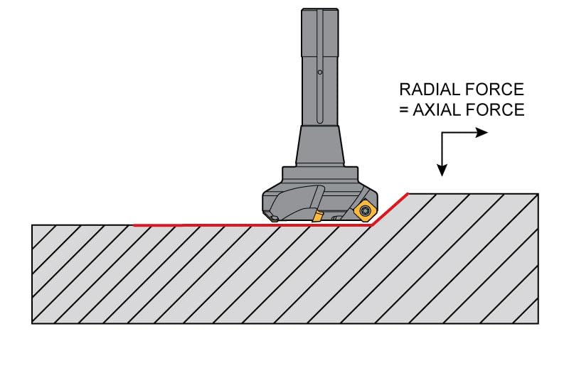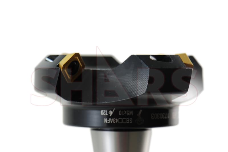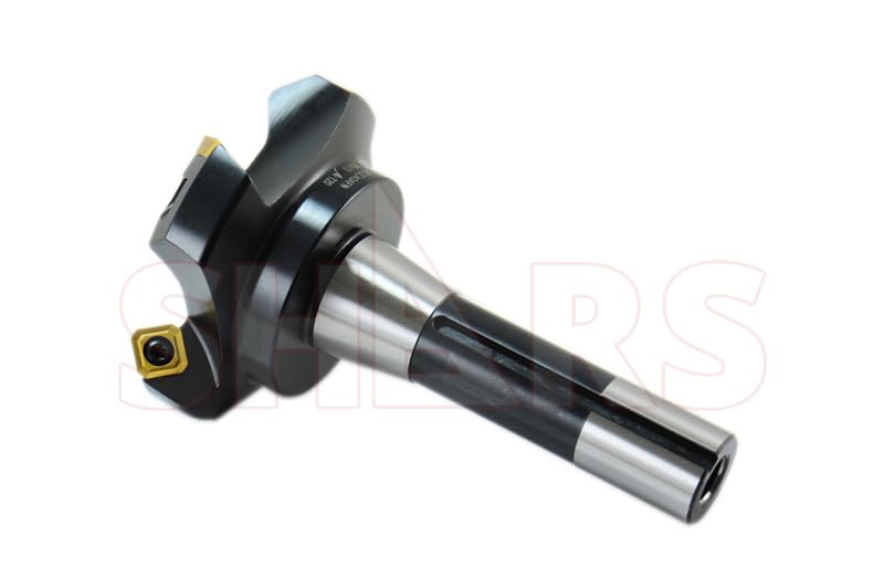 Suitable for most face milling applications / Reduces vibration on long overhang applications / Chip thinning effect allows for increased table feeds / High Positive cutting geometry / Benefit from the 45 degree lead angle allows an increase of feedrate by 50% over 90 degree face mill and also allows this face mill to used on smaller horse power mills. It uses industry standard SEHT / SEHW / SEHX 43 (ISO 1204) insert which has a positive 20 degree clearance angle. The insert pockets are designed to be 19 degree positive inclined to minimize vibration and each pocket has an chip escaping pathway to help preventing chip built-up on insert edge. / Each insert pocket is designed to reduce run-out and extent insert life. / Use SEKT / SEHT / SEHW 43 1204 insert (INSERT NOT INCLUDED) / Easy reference guide for insert number, screw, and other accessories is printed on the tool / Cutting Diameter: 3 / Shank Size: R8 / Number of Flutes: 4 / Cutting Angle: 45 /