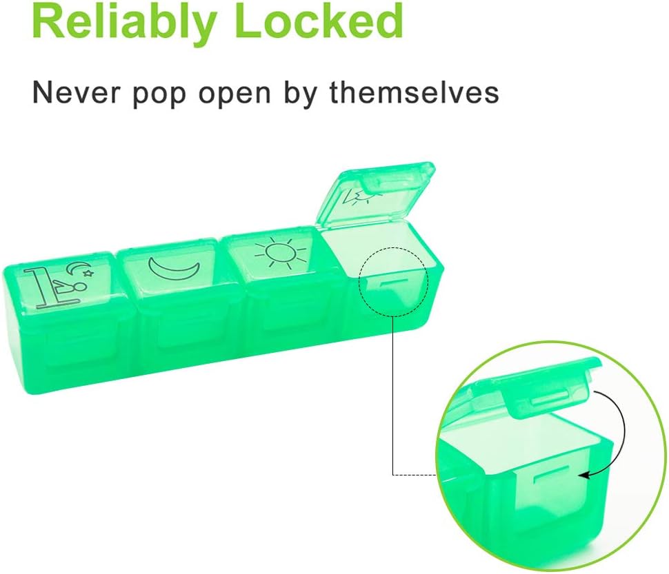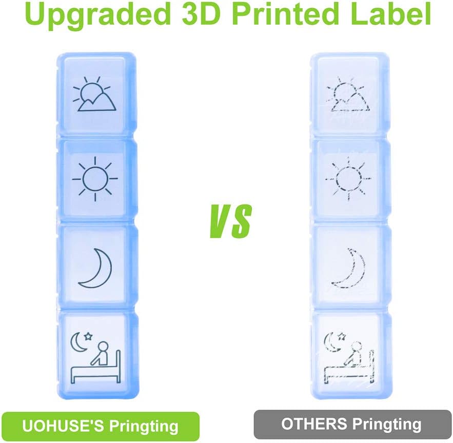 منظم أقراص دواء أسبوعي 4 مرات يوميا في اليوم، حقيبة سفرية 7 أيام لأقراص دواء مضادة للغبار، حاوية تذكيرية للسفر مع مساحات كبيرة للفيتامينات وزيت السمك/المكملات الغذائية