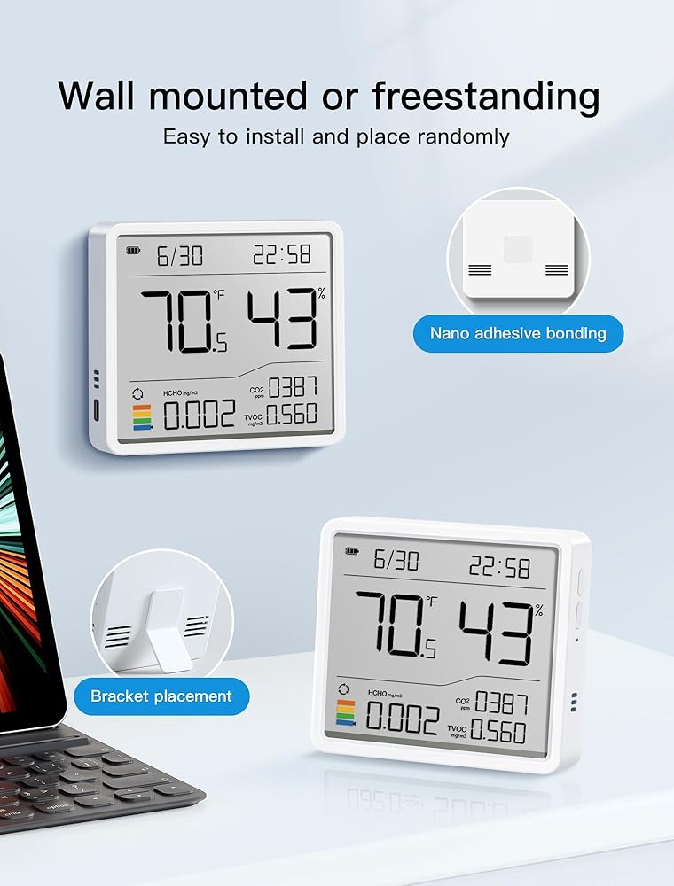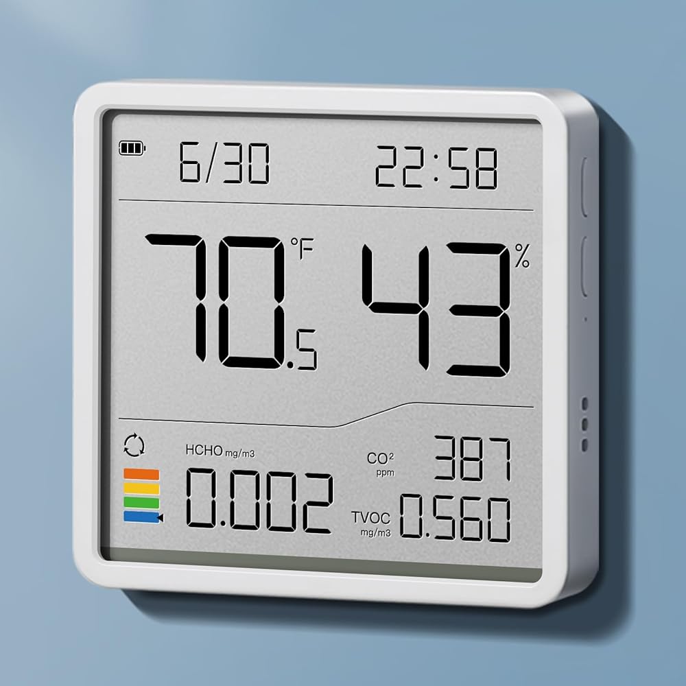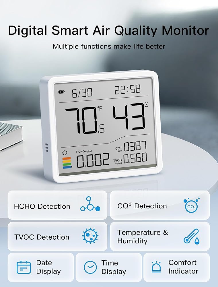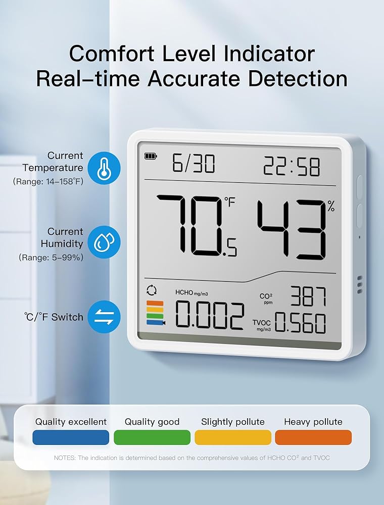 مونيتو جودة الهواء في الهواء ، مقياس الرطوبة الرقمي ، مقياس الرطوبة ، الرطوبة ، رطوبة درجة حرارة مقياس الغرفة ، مراقبة رطوبة درجة الحرارة Forco2 ، TVOC ، الفورمالديهايد ، المنزل ، غرفة النوم ، غرفة الطفل ، المكتب