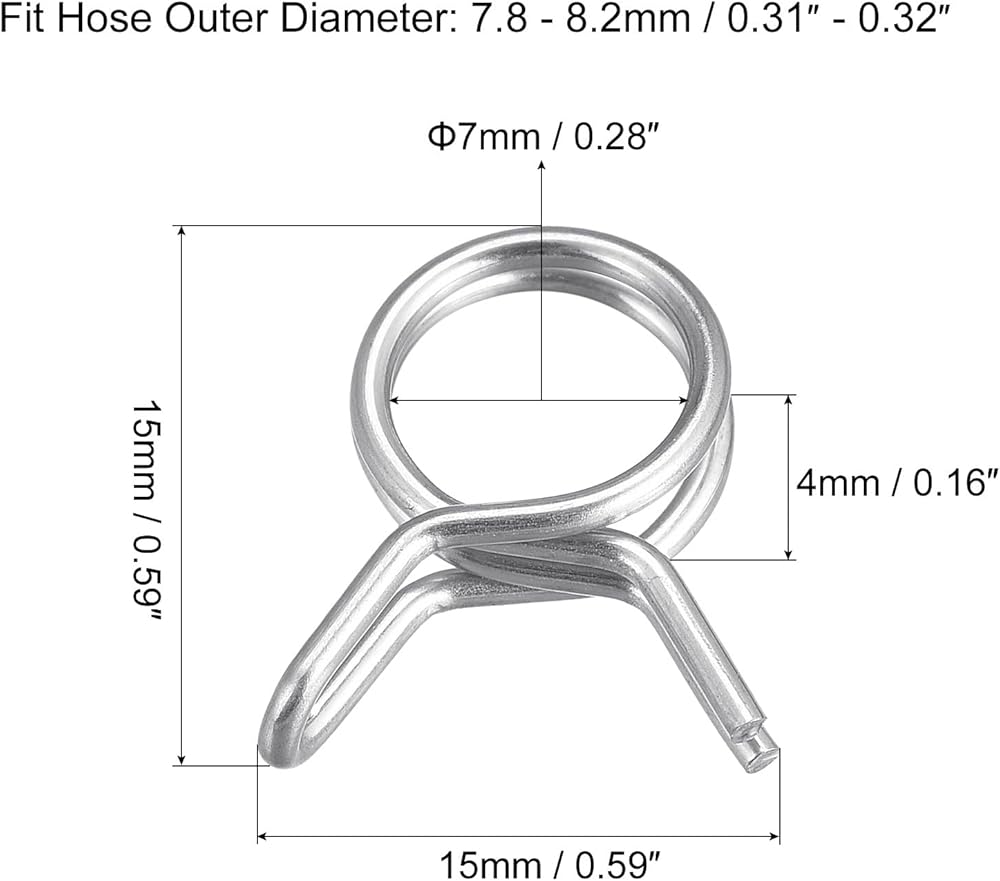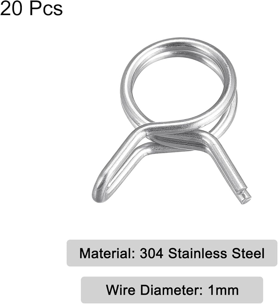 #US 20pcs Double Wire Spring Hose Clamp 304 Stainless Steel 7mm Spring Clips