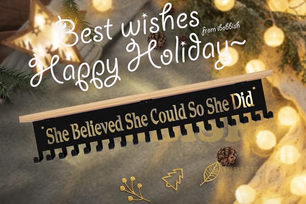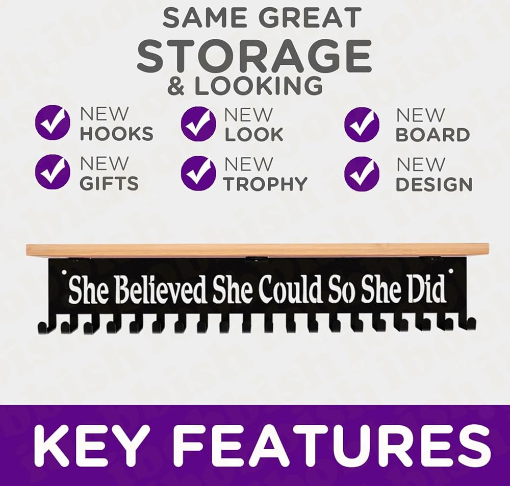 Those heavy duty non-bent sturdy trophy medal hangers with 20 hooks,trophy bamboo board shelf with gift box is perfect for friends,colleague,lover.