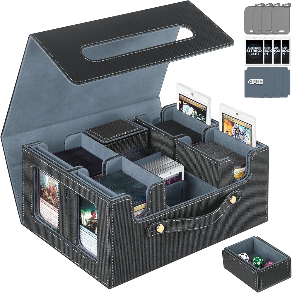 【يحمل 600+ بطاقة مزدوجة الأكمام】 حجم علبة بطاقة سطح السفينة لدينا هو 11.0x7.9x4.7 بوصة ، كبيرة بما يكفي لتخزين 900+ بطاقات أحادية الأكمام بسهولة ، 600+ بطاقات مزدوجة الأكمام ، 1400+ بطاقة أكمام.