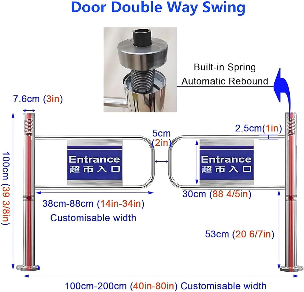 Introducing our premium entrance swing gate, a versatile solution designed for various environments including warehouses, supermarkets, and public spaces. This sturdy metal swing gate serves as an efficient pedestrian transfer door, enhancing safety and controlling traffic flow in busy areas. Crafted from durable stainless steel tubing, this gate combines strength with a sleek silver finish, making it suitable for both industrial and commercial settings. Standing at a height of 100 cm, it is available in customizable lengths ranging from 100 cm to 200 cm, ensuring a perfect fit for your specific requirements. Ideal for use in warehouses, construction sites, and parking lots, our entrance swing gate helps maintain organized pathways while ensuring that only authorized personnel can enter sensitive areas. It is especially effective at supermarket entrances and shopping malls, where managing foot traffic is essential for a seamless shopping experience. Additionally, it's perfect for public locations such as libraries and subway stations that require controlled access. The gate features a manual-closing mechanism, allowing it to automatically rebound and close after passage, promoting ease of use while ensuring safety. Installation is straightforward with drilling accessories included, making setup a breeze. Whether you need to secure a work zone or guide traffic in high-traffic areas, our entrance swing gate is designed to meet your needs efficiently. Experience the perfect blend of functionality and durability with our metal swing gate, your reliable solution for enhanced safety and controlled access.