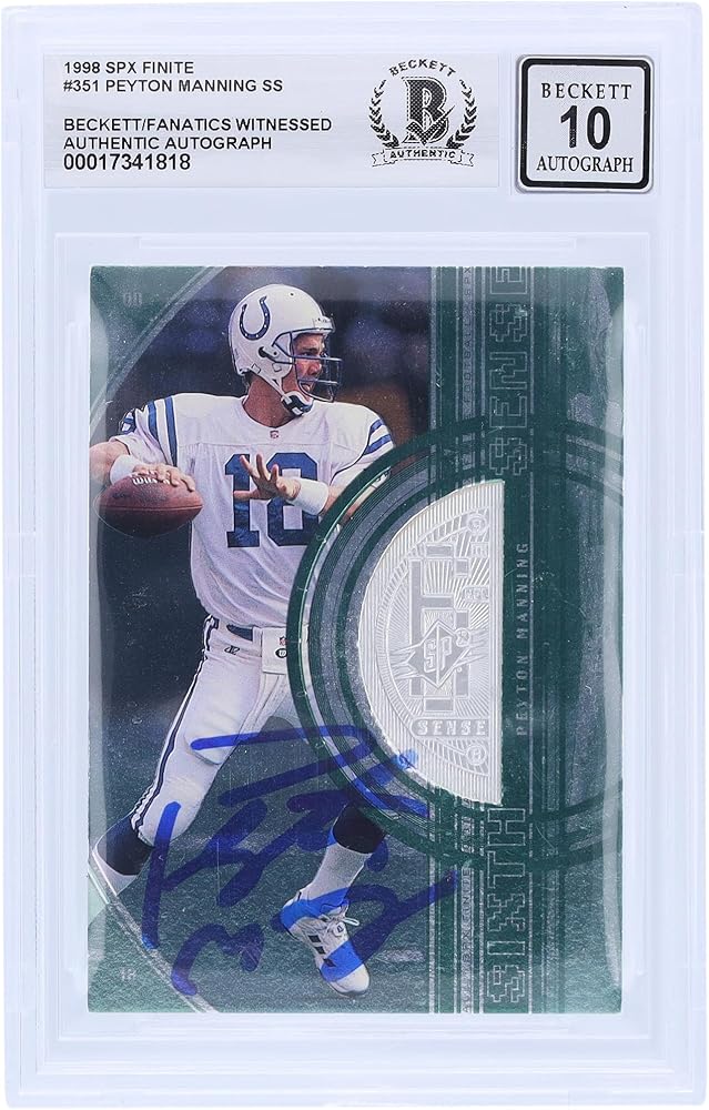 Peyton Manning Indianapolis Colts Autographed 1998 Upper Deck SPX Finite #351 #/2700 Beckett Fanatics Witnessed Authenticated 10 Rookie Card . If a product is unsigned or non game-used, a hologram will not be included. Peyton Manning memorabilia. Indianapolis Colts memorabilia.