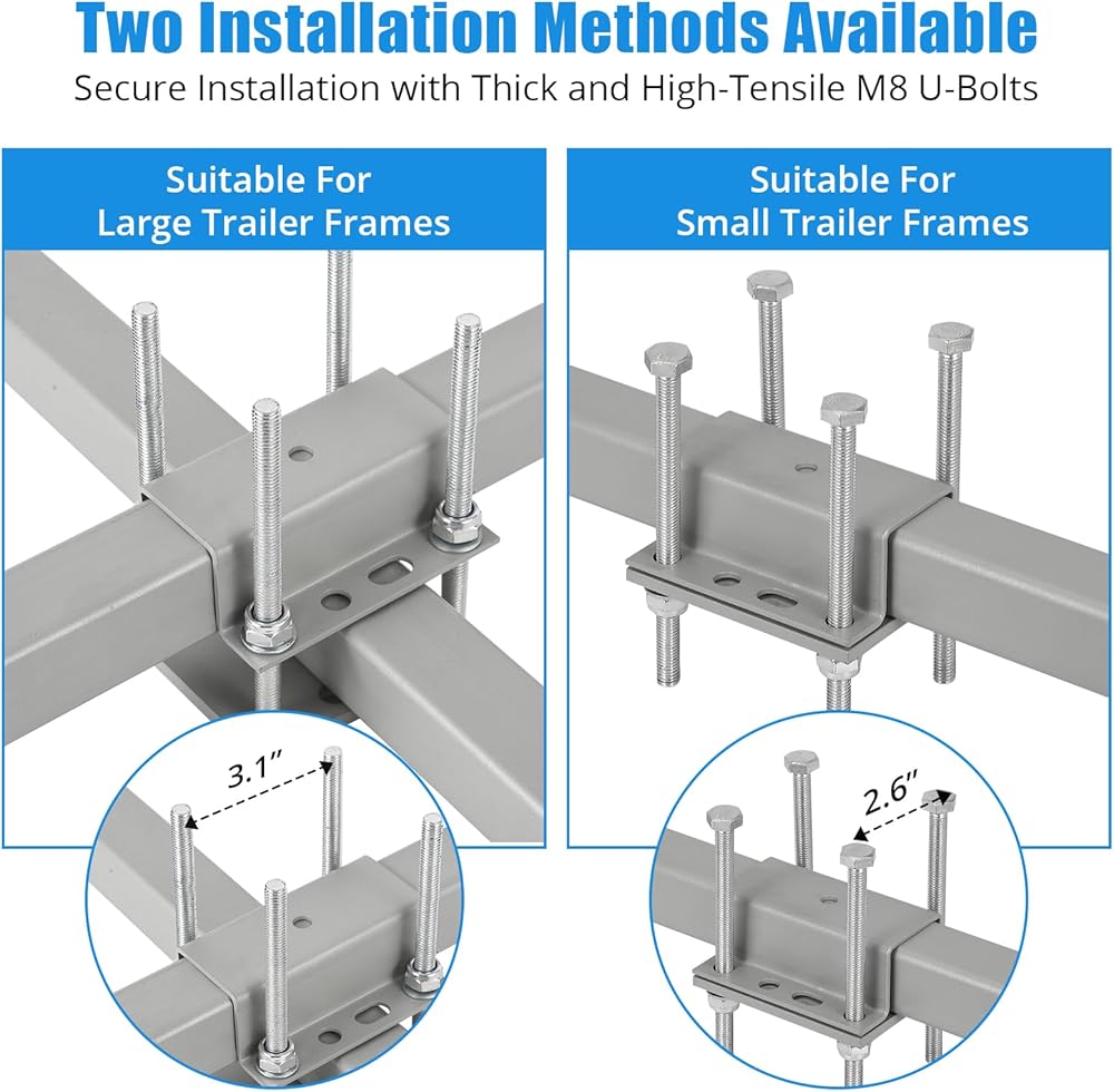التثبيت المرن: تم تصميم دليل مقطورة القوارب لدينا لتوفير خيارات تثبيت مرنة. يمكن تركيبه فوق أو أسفل الإطار. تعتبر u-bolts متعددة الاستخدامات ويمكن أن تناسب كل من الإطارات الكبيرة والصغيرة ، مما يجعل من السهل تثبيت الدليل بشكل آمن وبسهولة.