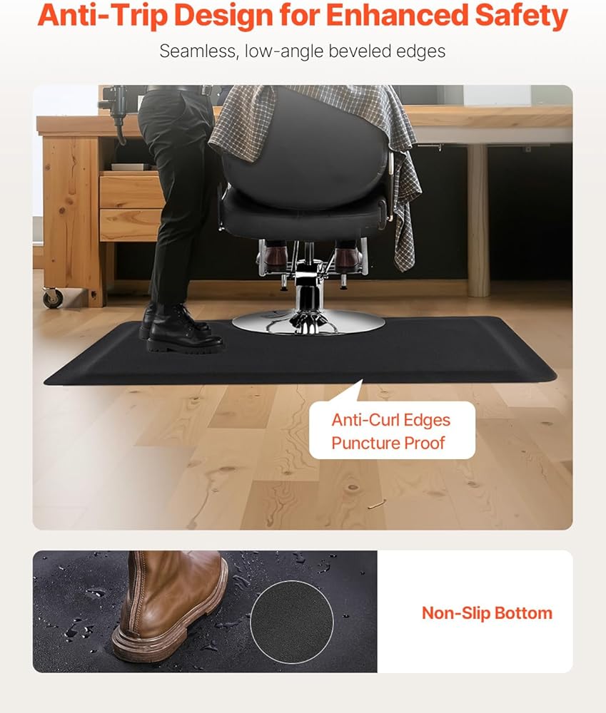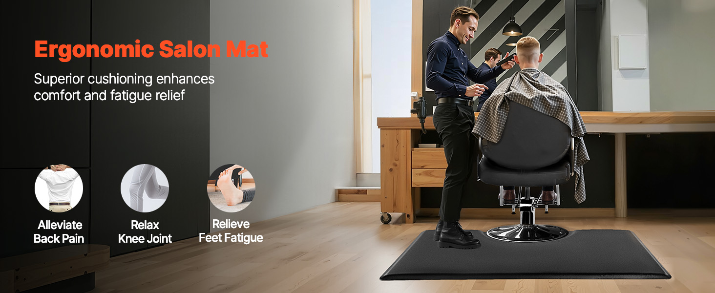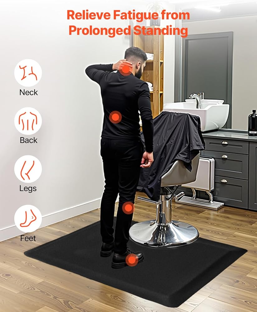 راحة فائقة: مملوءة برغوة PU ذات السمك 7/8 بوصة وعالية الكثافة ، توفر حصيرة كرسي صالون مضادة للهاءات وسادة متميزة وامتصاص الصدمات ، وتقليل التعب ، والضغط ، والضغط على قدميك ، وساقيك ، والركبتين ، والعودة من الساعات الطويلة من الوقوف