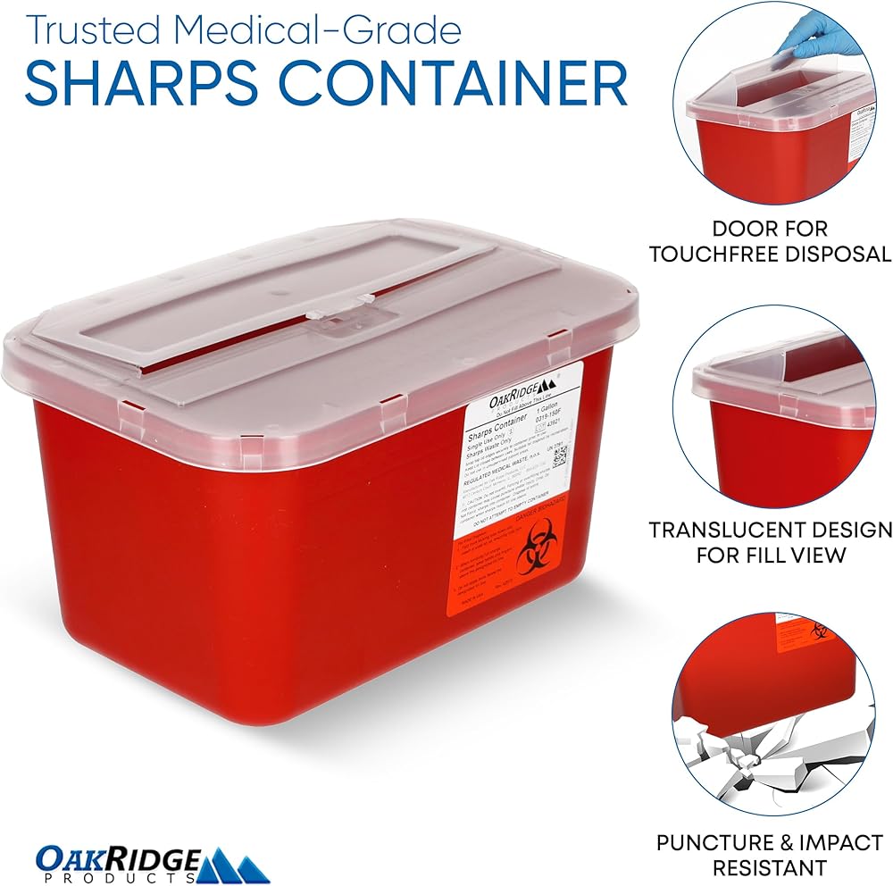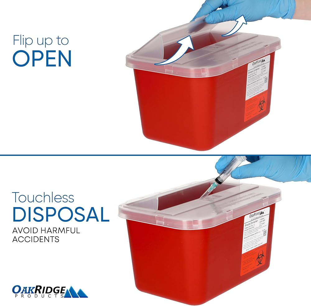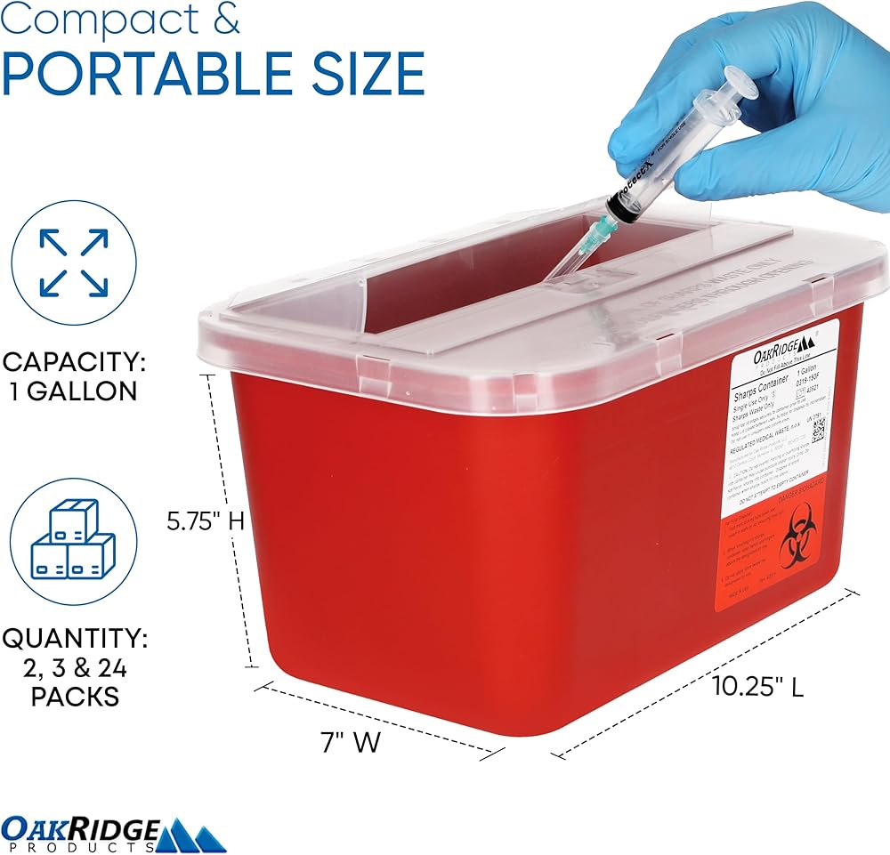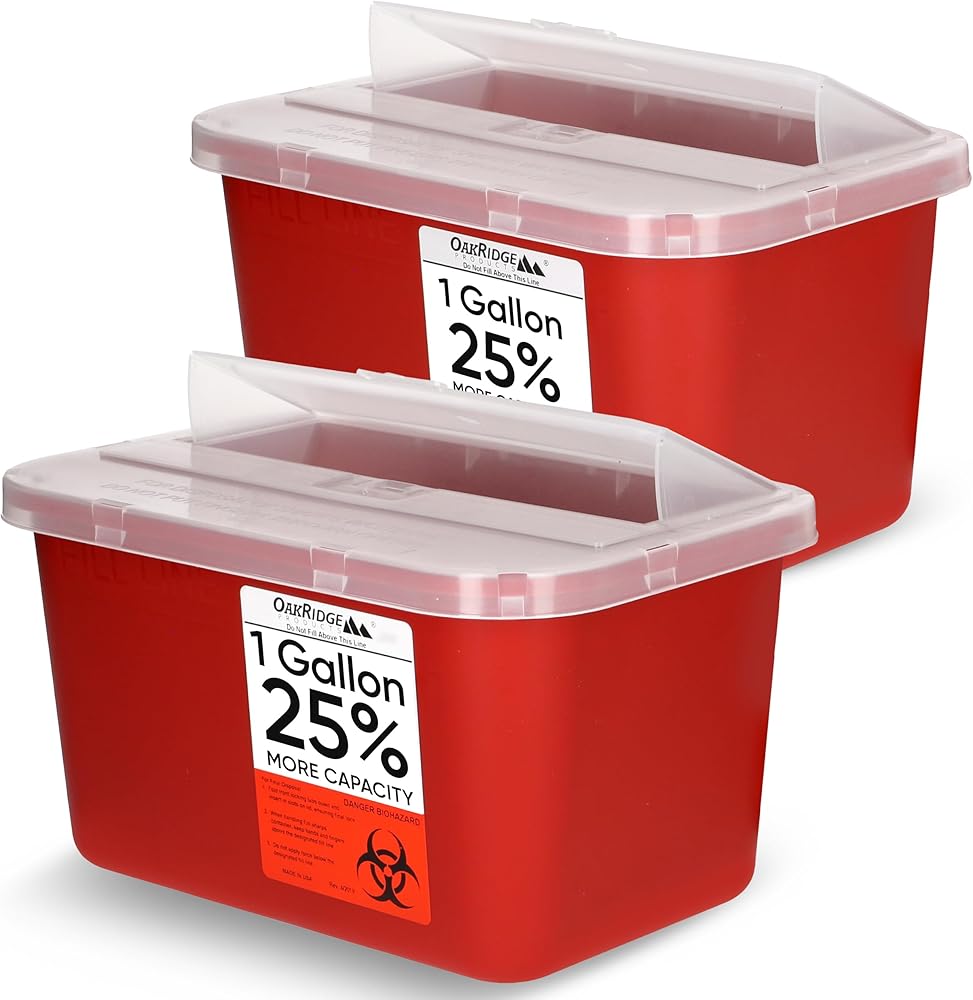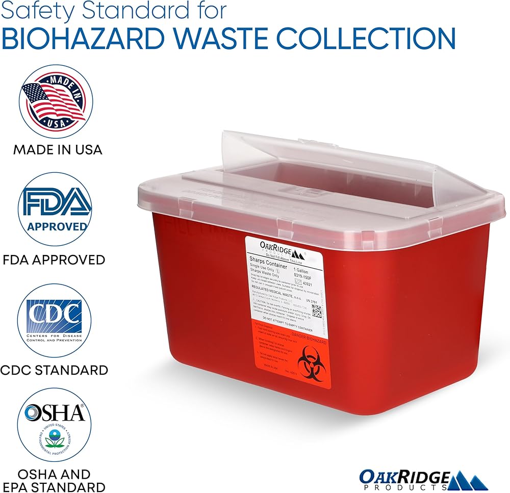 Oakridge Products 1 gallon containers for disposal diesis biological risk. Get three of them. Designed for multi-purpose use. Perforation-resistant vessel, transparent body allows easy display of diesis inside the container. Rotating lid maximizes sharp containers usable for large diesis. Easily locks for final disposal. Not all sharp containers are created equal and many slide through without the correct approval protocol and FDA safety. Oakridge Products sharp containers are FDA approved and all meet or exceed all guidelines for sharp vessels including OSHA and EPA requirements for local biological hazard waste collection. And you're going to buy straight from Oakridge so you know you're getting the authentic item. Our FDA approved container features a simple to use pop-up lid that is easy to open to dispose of waste. When full, simply press the tab on the lid in the body and is now permanently locked and ready for disposal. Safe disposal of needles and needles with syringes and vacutainer or with dividing tubes, pen needles, hands, blades (razors, scalpels, etc.) pipettes, or slides. Built of puncture and have an impact resistant material. Safe to autoclave or burn.