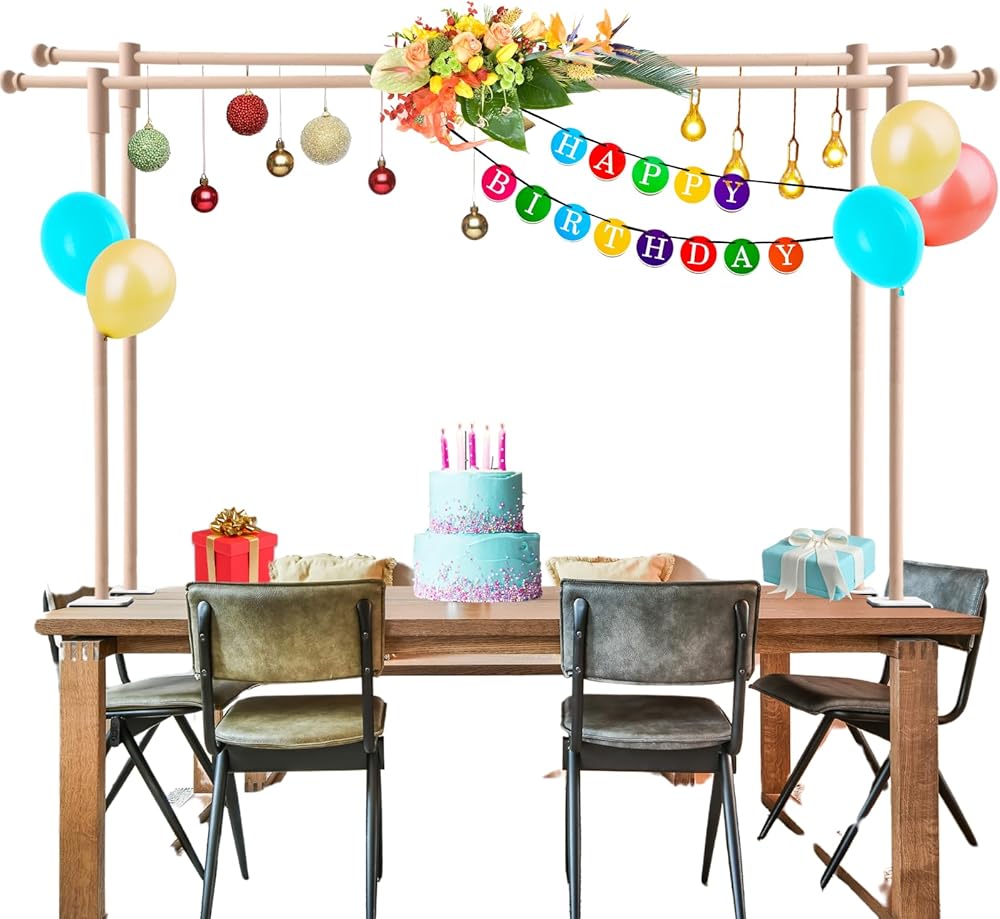 • مجموعة واسعة من التطبيقات: يمكن استخدام حامل قضيب الطاولة لتعليق النباتات ، والبث ، والبالونات ، واللافتات ، والستائر للزينة ، مما يضيف جوًا احتفاليًا أقوى إلى عيد الهالوين ، عيد الميلاد ، رأس السنة الجديدة ، أعياد الميلاد ، حفلات الزفاف ، الحفلات ، زخات الزفاف ، ودخات الأطفال.