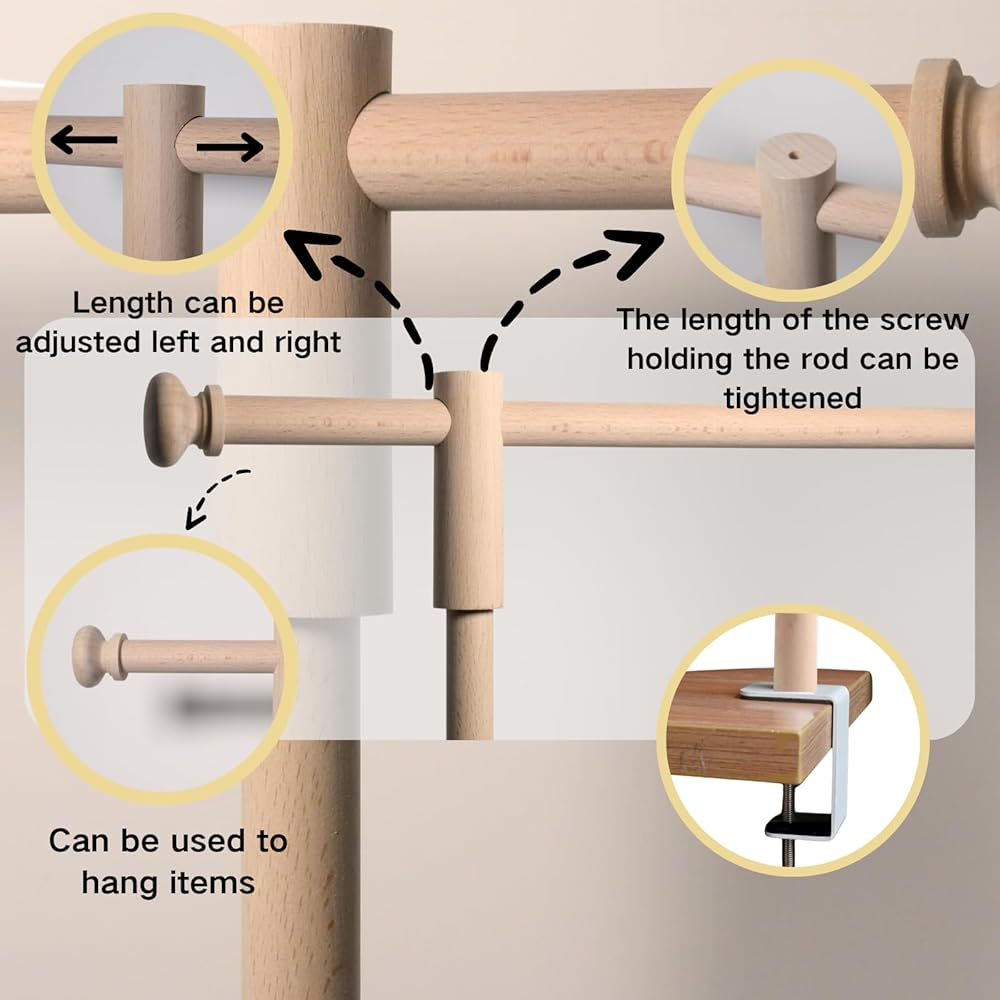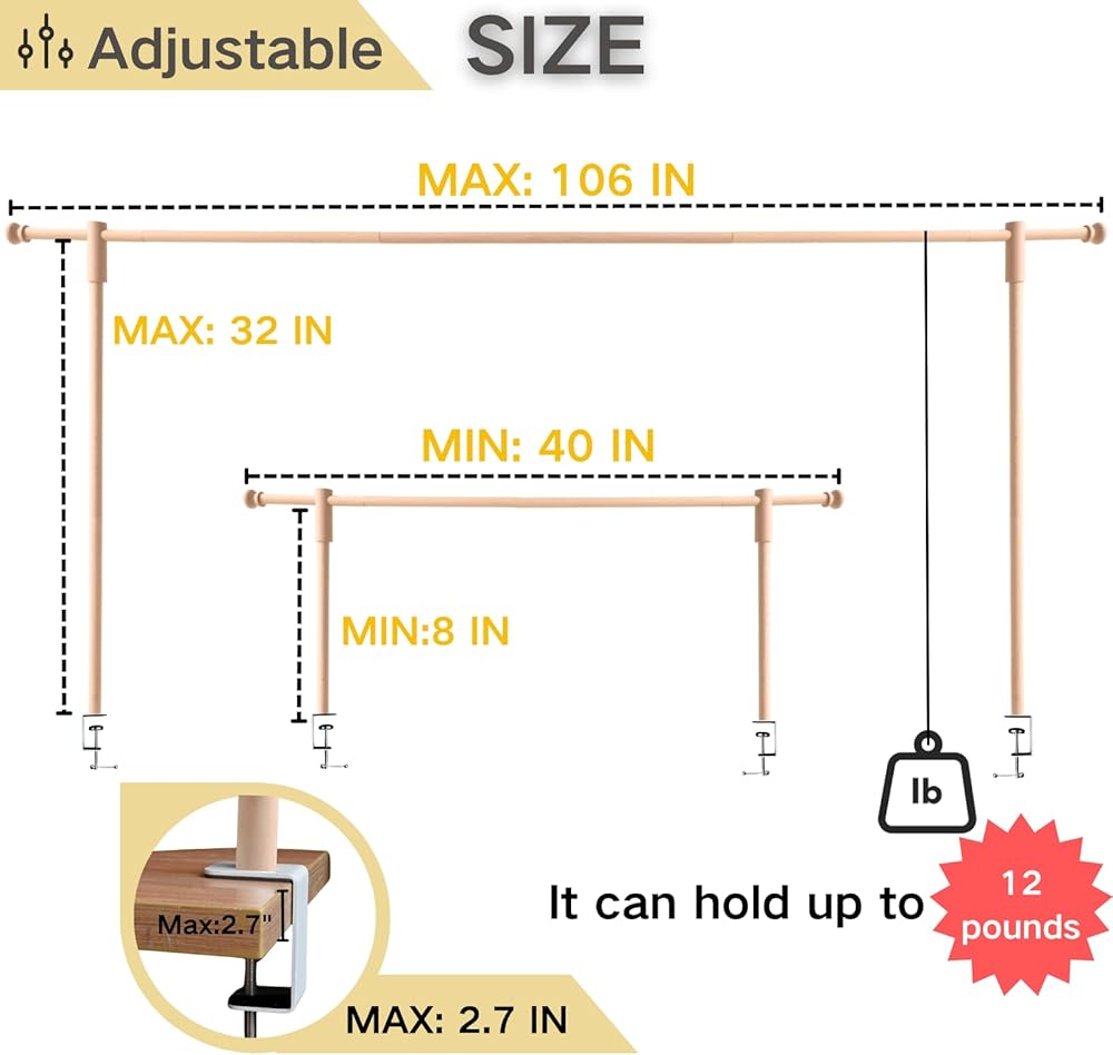 • قابلة للتعديل فوق حامل قضيب الطاولة: يحتوي حامل قضيب الطاولة الخشبي هذا على ارتفاع قابل للتعديل يتراوح بين 10 و 45 بوصة وطول قابل للتعديل 15-106 بوصة. انها مناسبة لجميع أنواع الطاولات. سواء كان لديك طاولة كبيرة أو طاولة صغيرة ، يمكن أن يلبي هذا الحامل احتياجاتك.