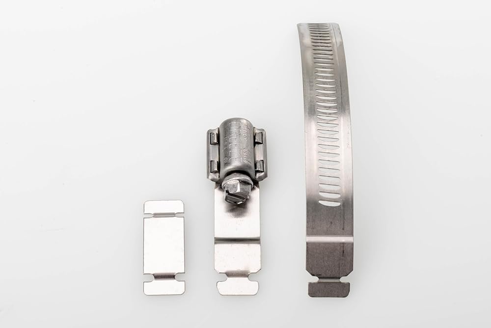 Includes banding, band splice, and adjustable fastener to create clamp for mounting, strapping, clamping, and positioning applications