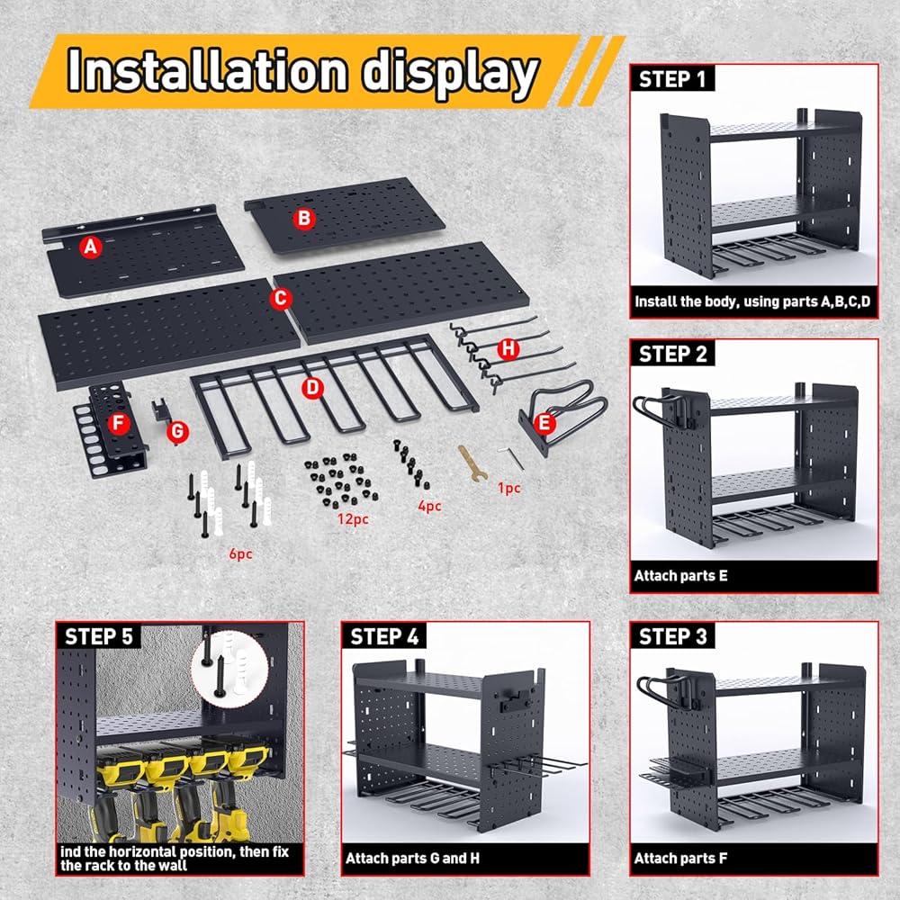 سهل التثبيت : إن عملية التثبيت لرفوف المرآب الخاصة بنا سهلة ، نحتاج فقط إلى توصيل الأسلاك الفولاذية المقياس والطلاء بالمسامير وعلقها على الحائط. نحن نقدم أدلة احترافية وملحقات التثبيت المهنية. تحتاج فقط ببضع دقائق لتجميع وحدة تنظيم أدوات مثالية لجدار الجراج.