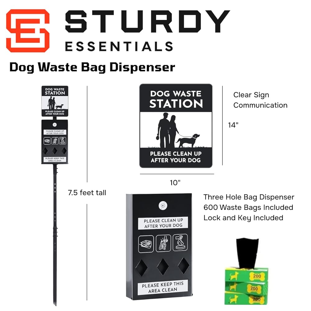• ALL IN ONE DOG WASTE STATION: This dog waste station includes a convenient bag dispenser, trash receptacle with lid, 300 doggy bags, 25 liners, and keys making it the perfect solution for managing pet waste in parks, trails, and public areas. Perfect for reducing maintenance and mess.