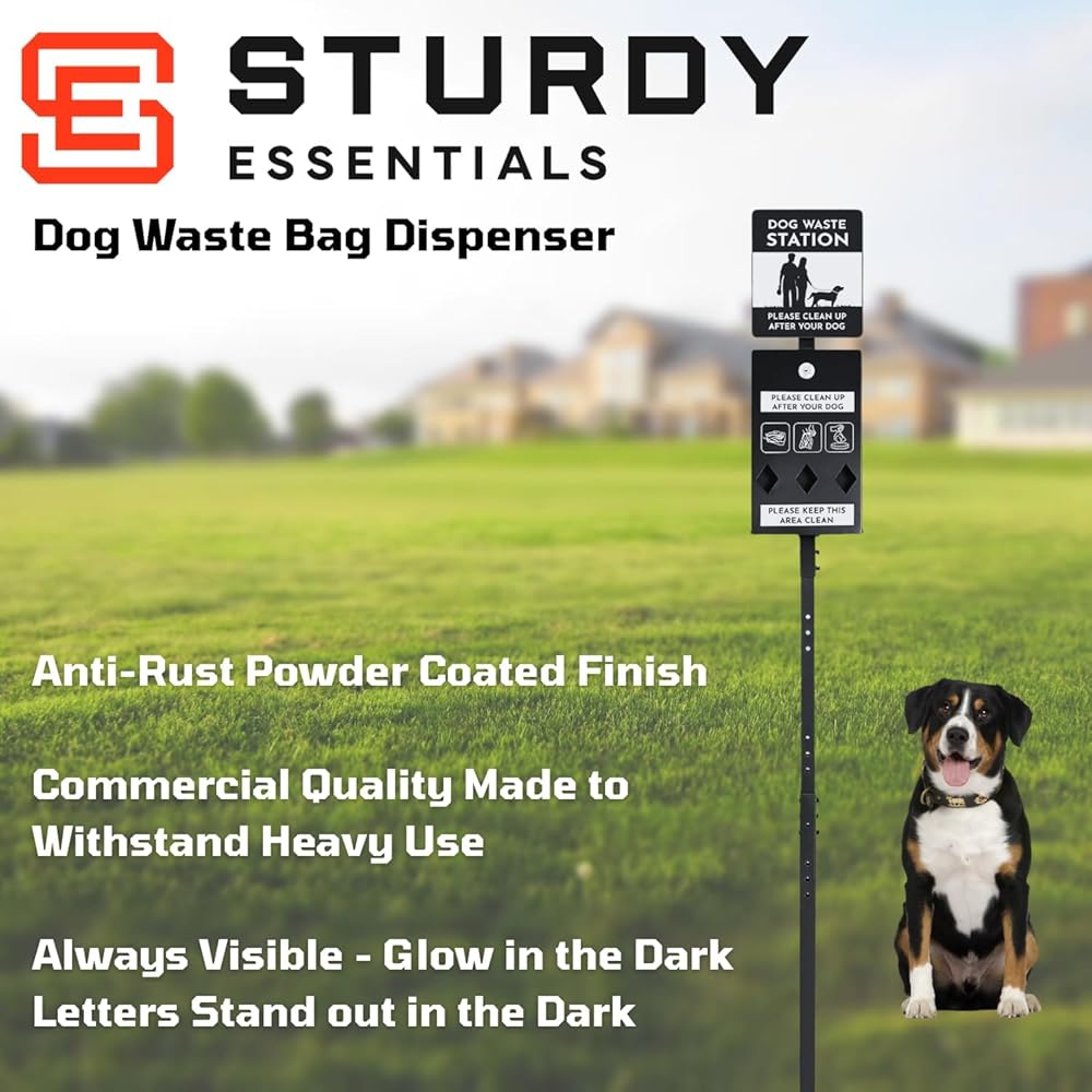 • HYGIENIC AND EASY TO CLEAN: Made from non-porous, stain-resistant material, this pet waste station is easy to clean and maintain. It won't rust, and the durable surface is resistant to pet urine, harsh chemicals, and weather conditions, ensuring it remains in excellent condition over time.