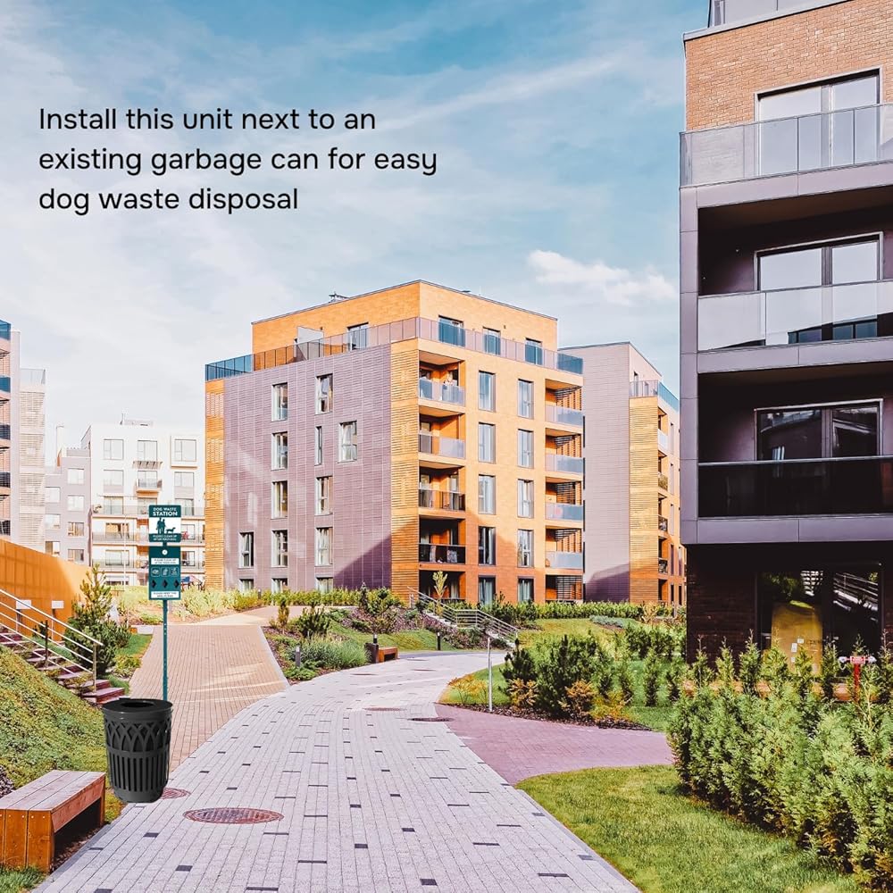 Keep your outdoor spaces clean, hygienic, and pet-friendly with this All-in-One Dog Waste Station, the ultimate solution for managing pet waste in parks, trails, residential communities, and commercial properties. Designed for both high-traffic public areas and private use, this complete station includes everything you need to create a responsible pet waste management system: a convenient dog bag dispenser, a secure lidded trash receptacle, 300 doggy waste bags, 25 heavy-duty liners, and lockable keys for added security. Crafted from heavy-duty, powder-coated steel, this pet waste station is made to endure tough outdoor conditions without rusting, fading, or corroding. Whether it's exposed to rain, sun, snow, or pet urine, the robust materials resist wear and tear over time. It's also safe to clean with most common outdoor cleaning agents, making it perfect for high-traffic areas like dog parks, city trails, apartment complexes, or commercial properties. The thoughtfully engineered bag dispenser features a key-locked door for security and a generous internal capacity to hold extra stock. This helps reduce the frequency of refills and ensures waste bags are always available when pet owners need them. The easy-pull design allows for quick access while minimizing waste or spillage. The non-porous, stain-resistant surface is easy to wipe down and sanitize. Designed to handle frequent use and exposure to the elements, it resists buildup from pet urine, dirt, and grime. Plus, it won't rust—ensuring a professional appearance over the long haul. Whether you're managing a pet-friendly hotel, apartment building, bike trail, neighborhood park, or even your own backyard, this waste station is suitable for a variety of settings. It's an ideal solution for HOAs, property managers, municipalities, and business owners who want to promote cleanliness and environmental responsibility.