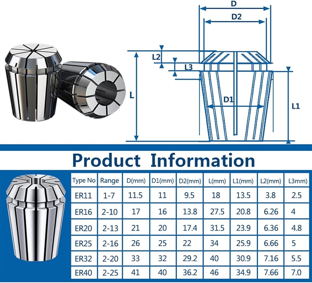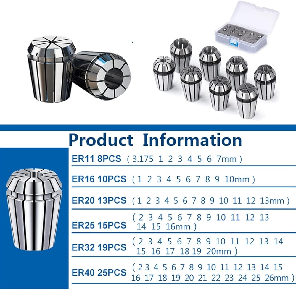Spring Collet Chuck ER11-ER40 1-26mm ER Chuck For Engraving Machine Lathe Milling 1Set