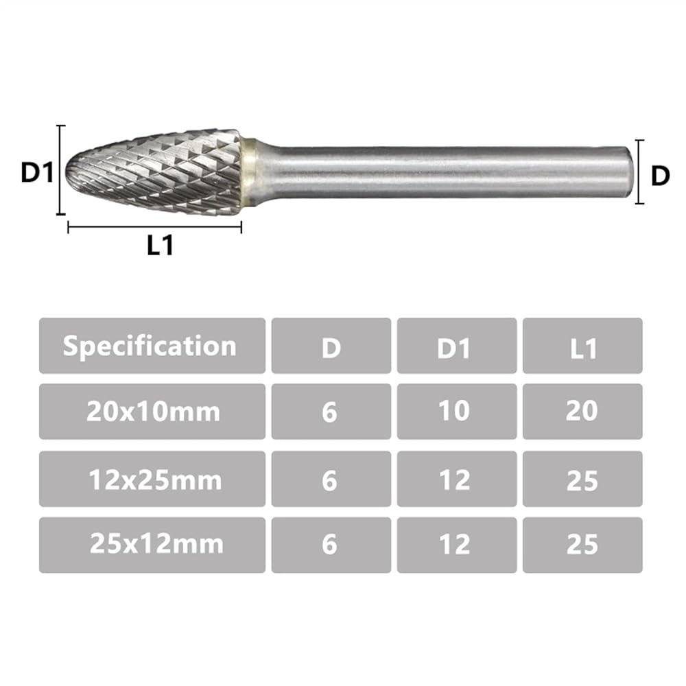 Rotary Files 6mm Shank Double Cut Rotary Burrs F Style Carbide Burrs For Rotary Wood Carving Milling 1Pcs