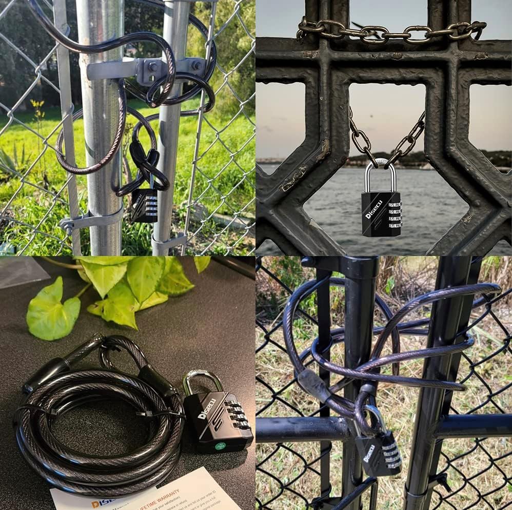 • Versatile Usage: This spring wire cable has a diameter of 4/25 inch (4 mm) and a length of 4 inches (100 mm), stretchable up to 60 inches (1.5 m). It can be easily coiled or stretched into various shapes to suit different needs. The combination lock, paired with a braided steel cable, is an excellent choice for a wide range of light-duty tasks such as securing travel luggage, bag, helmet, bike, school locker, gym locker, shed, fence, toolboxe, gate, hasp storage, among others