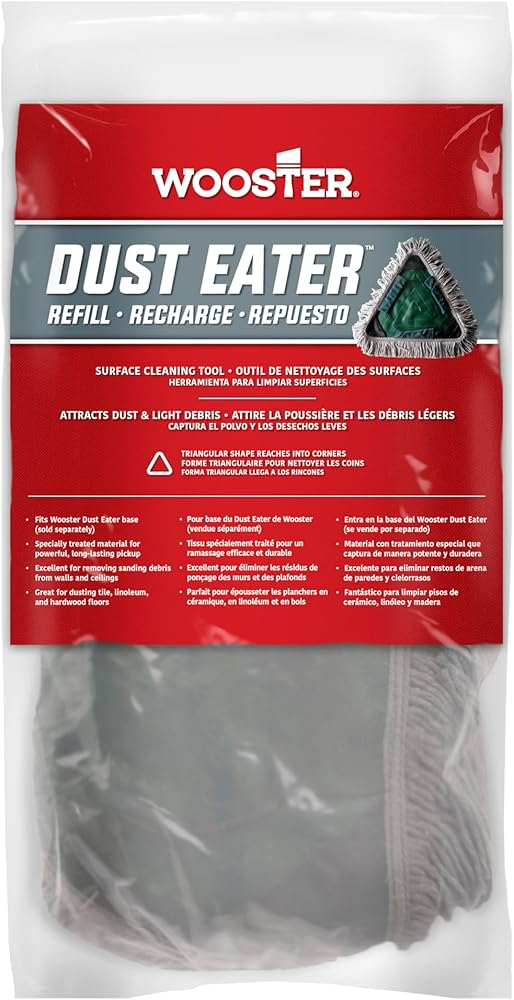 Specially treated material for powerful, long-lasting pickup. Attracts and holds dust, cobwebs, and more to clean drywall, ceilings, walls, baseboards, floors. Unique, 16" triangular shape to cover large surfaces and reach into corners. Stable 360-degree pivot for full surface contact, won't flip or gouge wall. Use with extension poles.