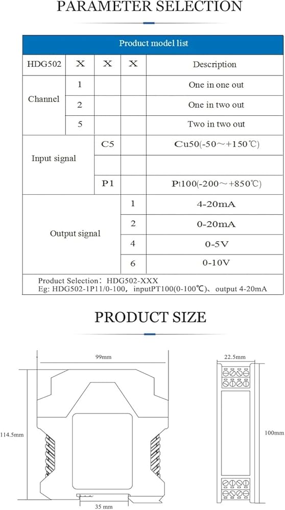 The HDG-502 Temperature transmitter, accept vairous types RTD and TC signals input, the input temperature range is adjustable .