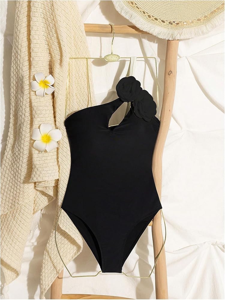 • Features: elegant one piece swimsuit for women, 3d flower, one shoulder, color block, cut out, wireless bra with removable padding