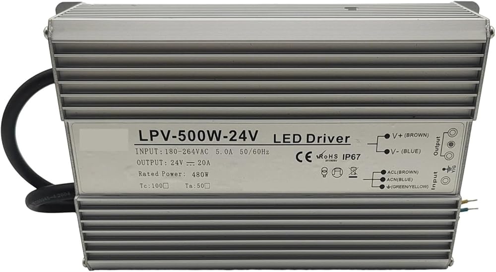 500W Waterproof Power Supply 24V 36V 48VDC Outdoor Waterproofing Switching Power Supply LPV-500W