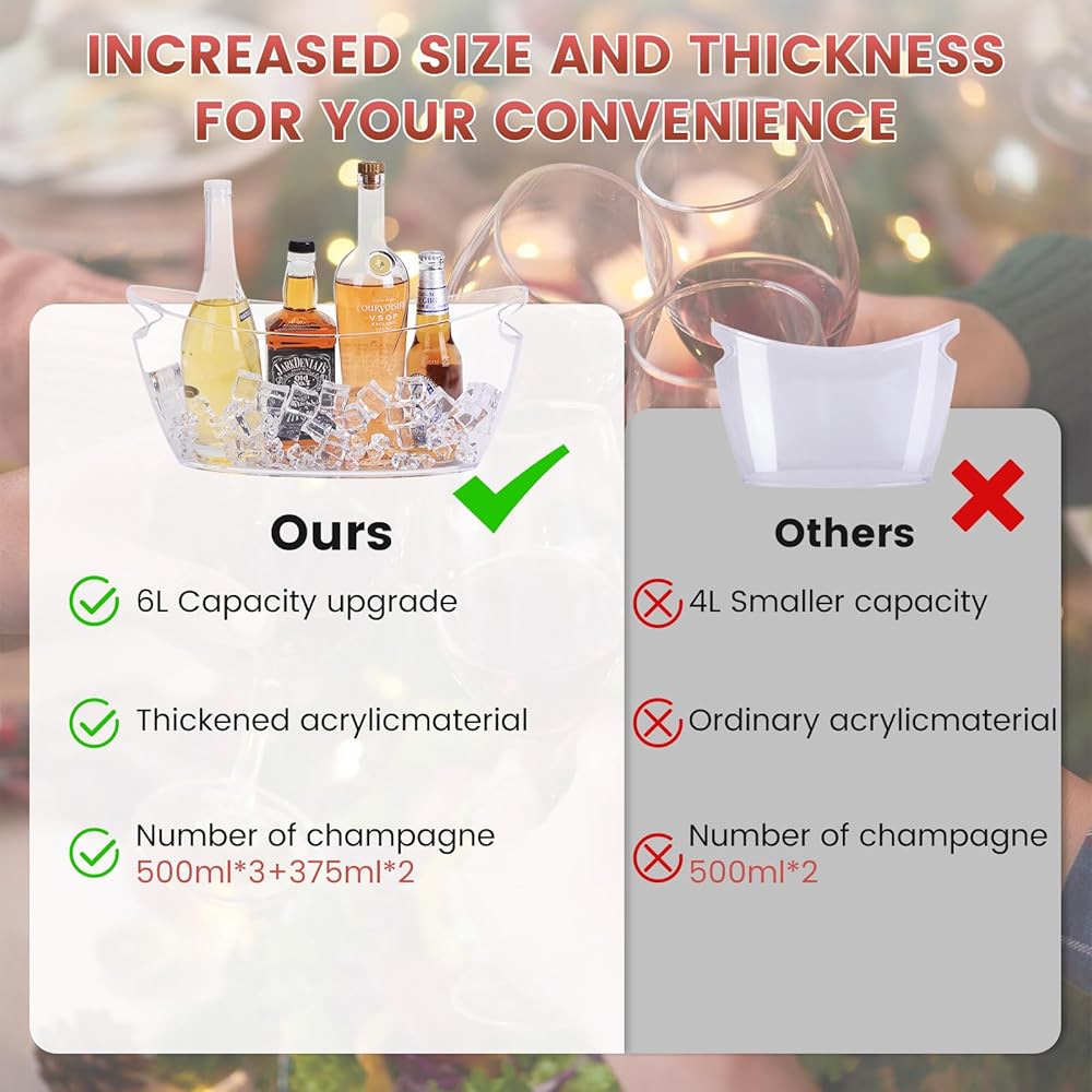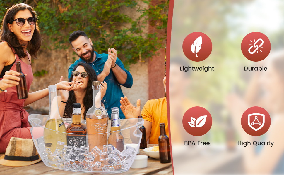 مثالي للحفلات والمناسبات الخاصة: يعد دلو الشمبانيا مثاليًا لإضافة لمسة من الأناقة إلى الحفلات والتجمعات والمناسبات الخاصة ، مما يضمن أن ضيوفك يستمتعون بالمشروبات الباردة طوال هذا الحدث.