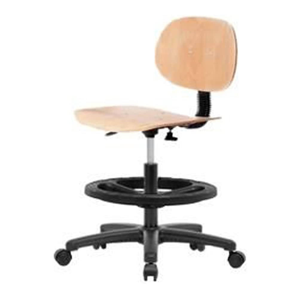 The product Type is wood medium Bench height chair with black nylon base, black foot ring, casters. Country of origin is United States, manufacturer of this product is Thomas.