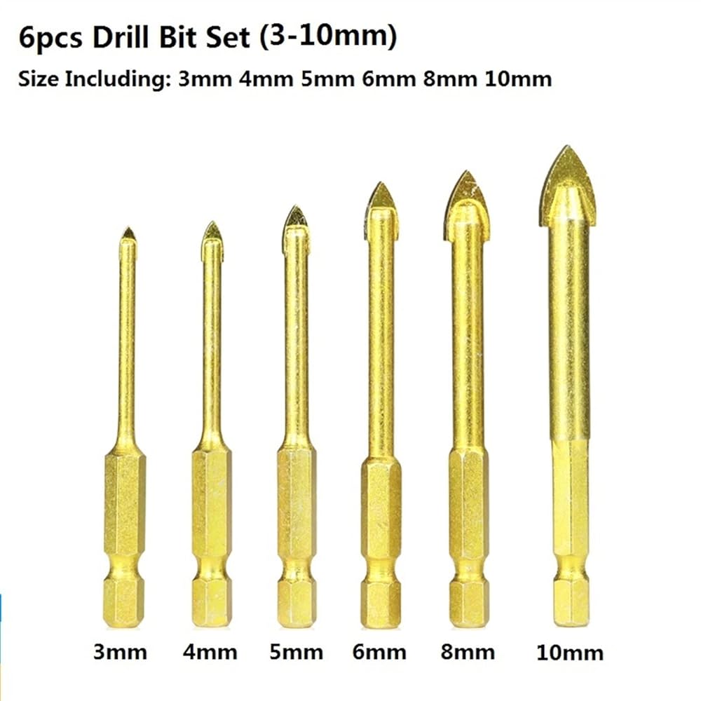 Carbide Glass Drill Bits Hex Shank Titanium Coated Power Tools Accessories Wall Glass Hole Drill 1Set