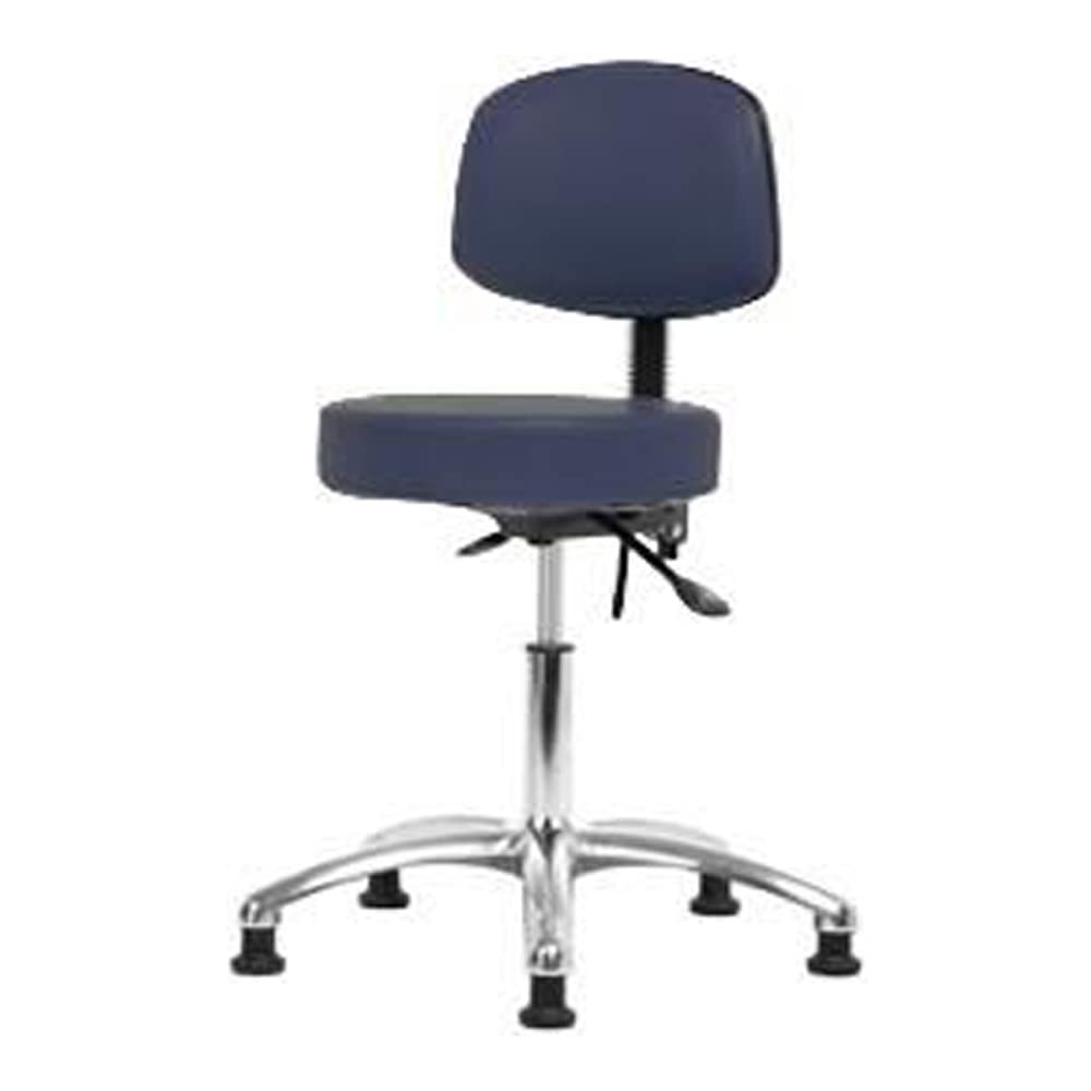 The product Type is vinyl desk height stool with back and chrome base, with tilt, glides, Navy. Country of origin is United States, manufacturer of this product is Thomas.