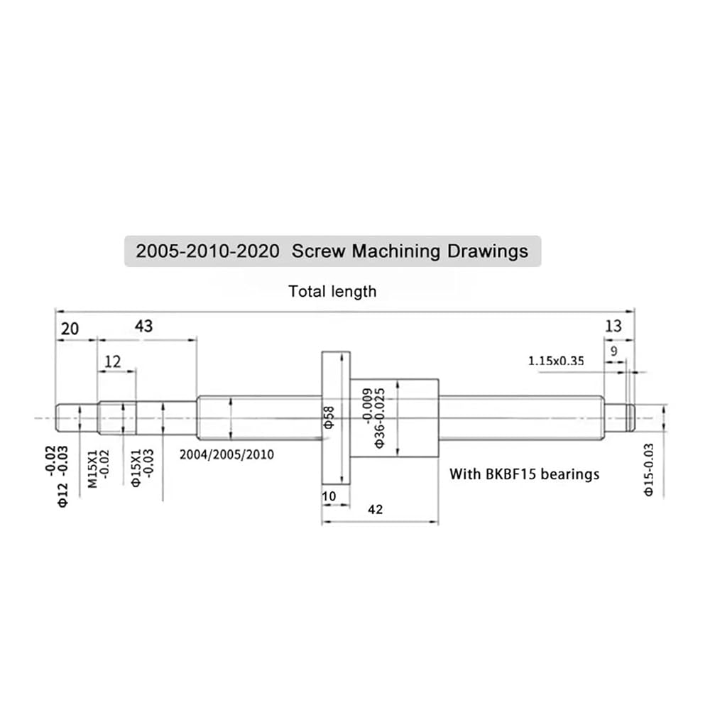 1pcs SFU2010 ball screw with nut, BKBF15 end machining + any length