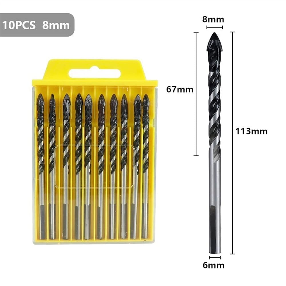 Gun Drill BitsDrill Bit 6/8mm Multifunctional Glass Metal Tile Drill Bit Triangle Diamond Drill Ceramic Concrete Wood Punching 10Pcs/SetSee the second picture for detailsSpecifications:Type: Glass Drill Bit Material: CarbideSize: 6mm, 8mmPackage Including:10pcs/set Glass Drill Bit