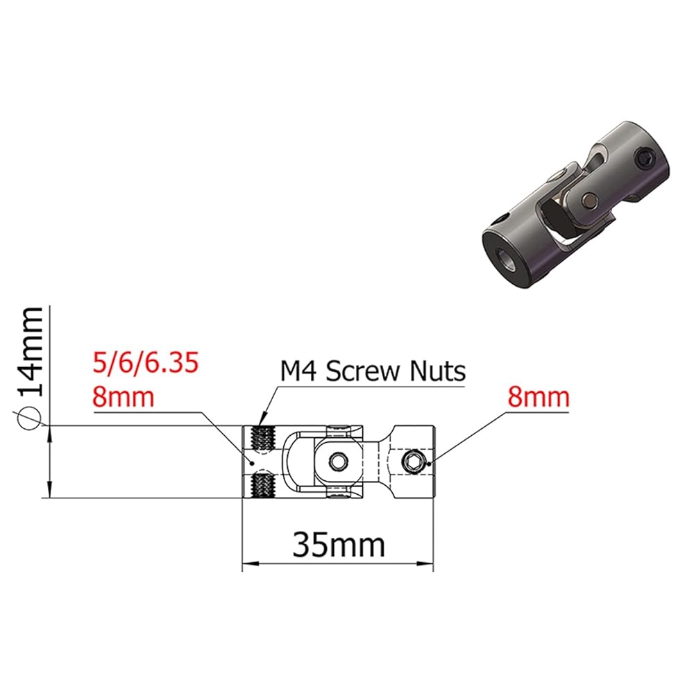• 【WIDE APPLICATION】Coupling Universal Joint Are Used In Servo Motor Systems, 3D Printer, Cnc Machine, Diy Encoder, Spindle Transmissions, Stepping Motors, Lifting Platforms, Machine Tool Transmissions, Stepping Motors, Encoders, Screw Drives, Machine Platforms Or Gearboxes, Etc. The Purpose Is To Firmly Connect The Driving Shaft And The Driven Shaft To Rotate Together And Transmit Motion And Torque.