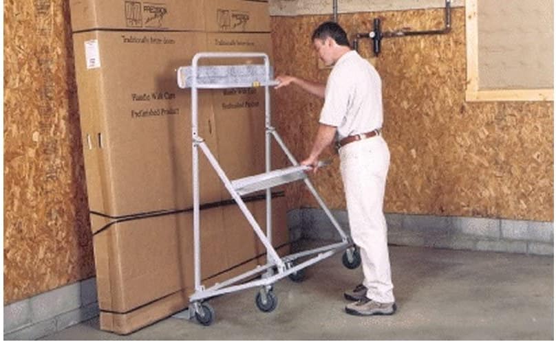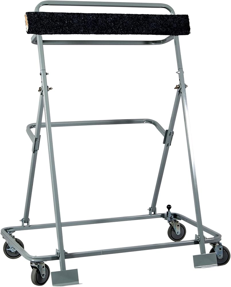 This dollie easily lifts heavy doors and windows, plywood, drywall, paneling, plate glass, and more. Simply roll dollie to your product, tilt forward to raise rear casters and lower lifting plates. Then roll underneath door or window. Pull door or window back against dollie, and tilt dollie back on all four casters. Very simple with no heavy lifting. The Warehouse Dollie is equipped with heavy duty casters for easy rolling. Padding is provided for product protection. An optional 24” x 32” plywood sheet (not included) can be placed on the base for accessories, no fasteners needed. Base and casters come pre-assembled. The frame is adjustable for handling different types of material. This dollie features one caster with directional lock and one caster with brake.