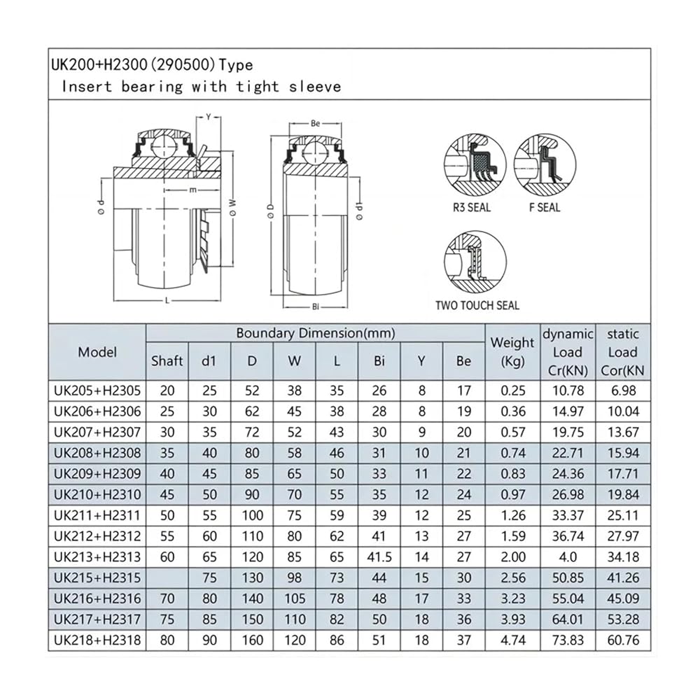 1PCS Taper Insert Bearing With Lock Sleeve UK205 206 207 208 209 210 211 212