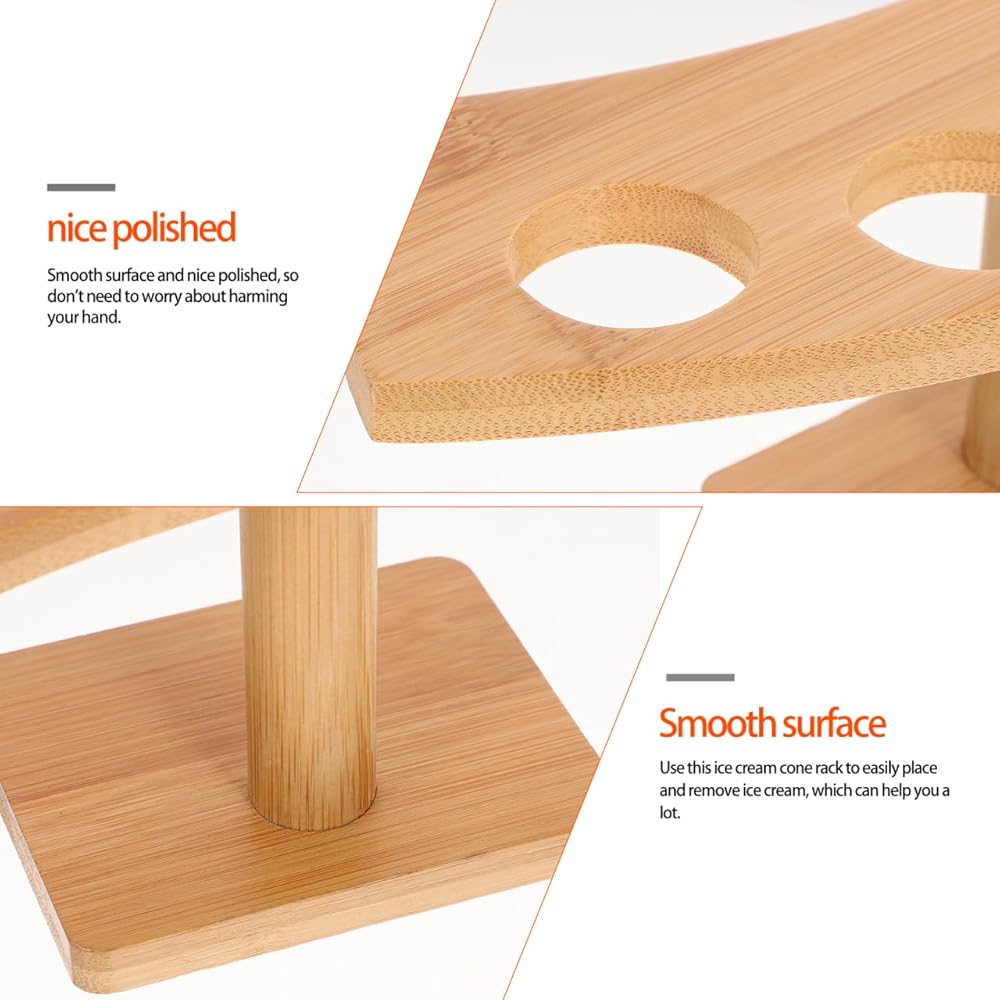 سعة 5 حفرة: حامل مخروط الآيس كريم الخشبي المصمم بخمس ثقوب قطرها 1.3 بوصة ، يمكن أن يحمل هذا الحامل بشكل آمن ما يصل إلى خمسة مخروطات آيس كريم أو لفات السوشي ، مماثلة لخدمة العديد من الضيوف في وقت واحد