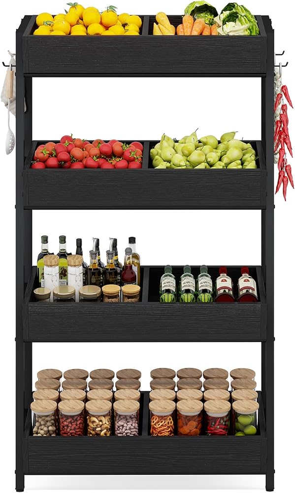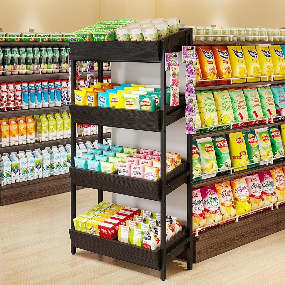 سعة الحمل عالية الحمل: يحتوي رف شاشة عرض البضائع هذا على صناديق خشبية هندسية لكل طبقة. تحمل كل طبقة ما يصل إلى 100 رطل ، مما يمنح الوحدة سعة رائعة 400 رطل. إنه يدعم الكثير من الوجبات الخفيفة ، دون خطر الانحناء أو الانهيار