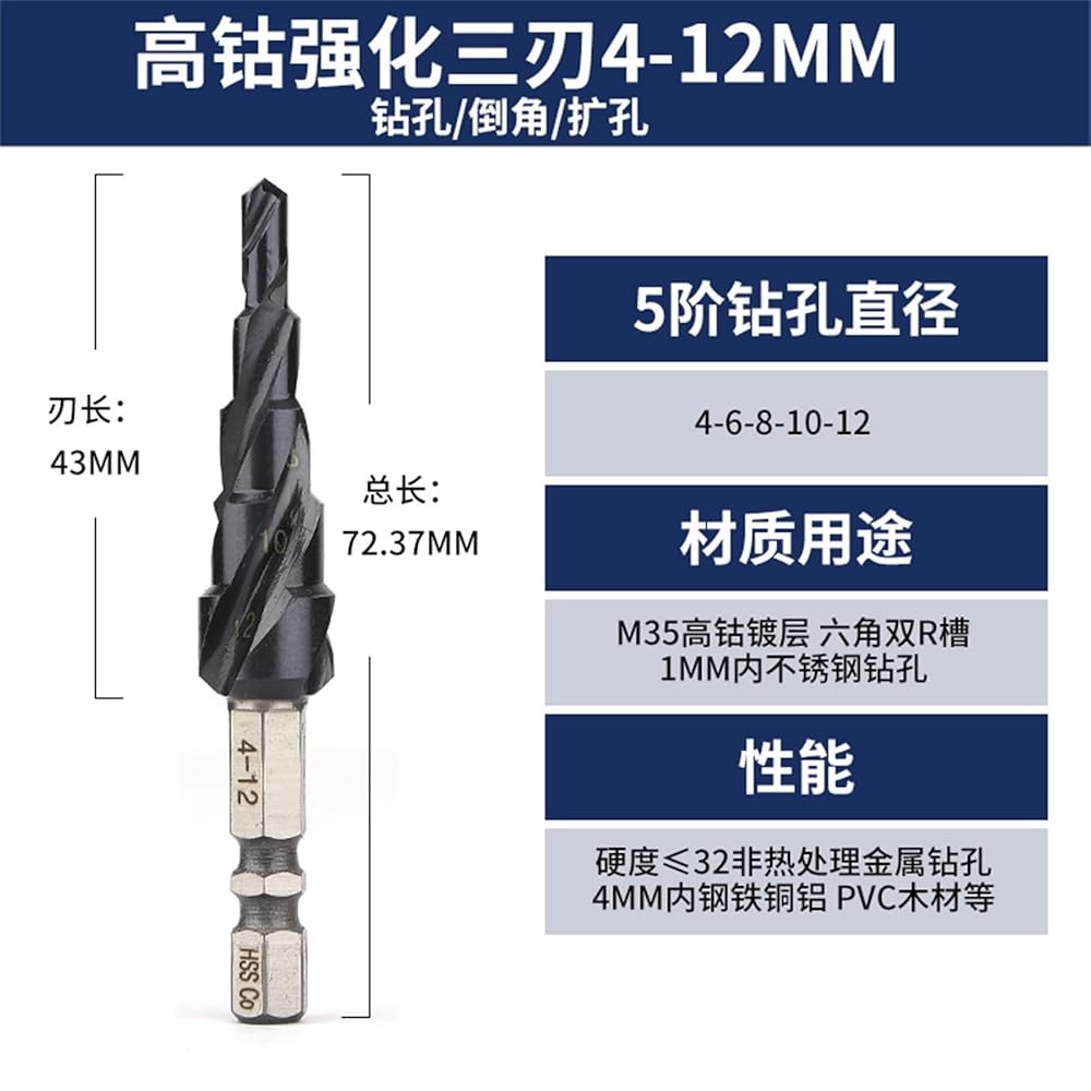 4-12mm 4-20mm 4-32mm 4-22mm 5-23mmHSS Straight Groove Step Drill Bit Coated Metal Hole Core Drilling Tools 1Pcs